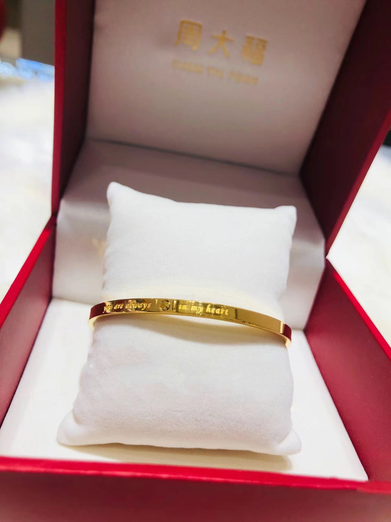 周大福代购 足金新款字母黄金手镯镜面亮面正品克减80计价F225130
