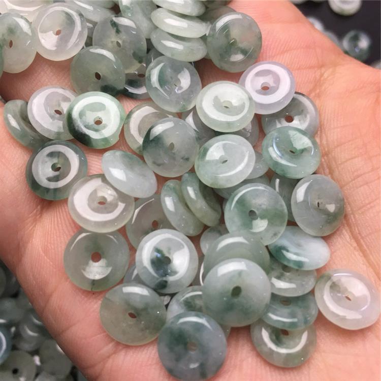 翡翠飘花平安扣货玉石散件小配饰玉器冰种飘蓝花小玉扣工艺品