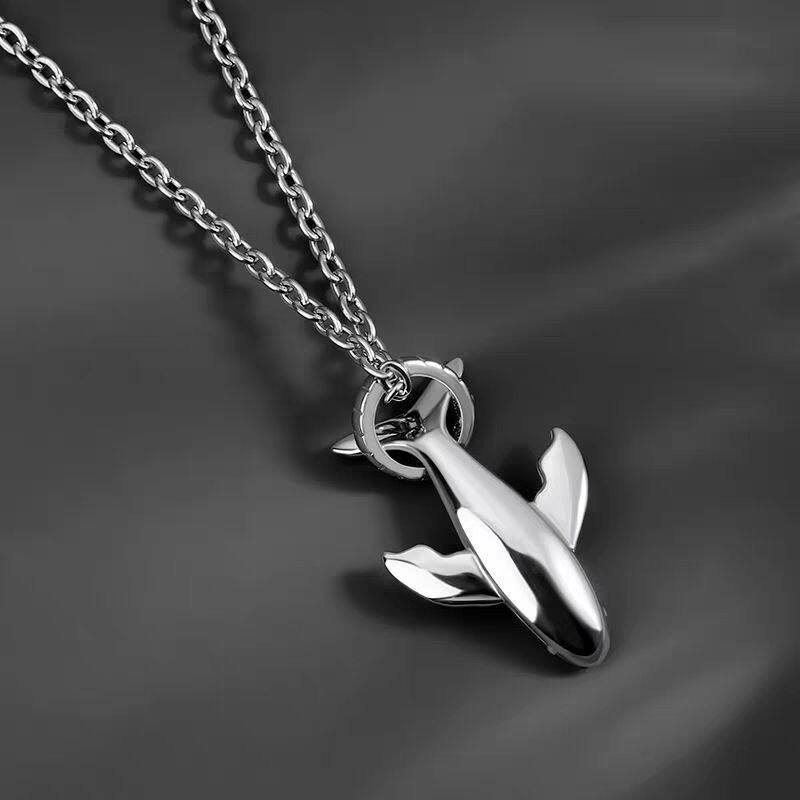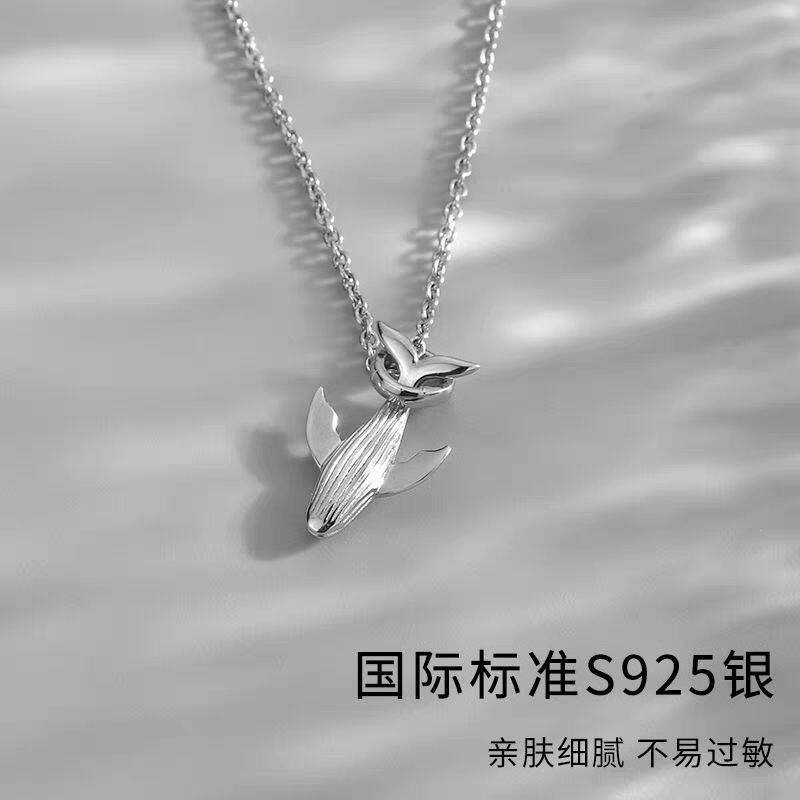 鲸落925纯银项链潮流冷淡风长款时尚简约ins男士吊坠鲸鱼