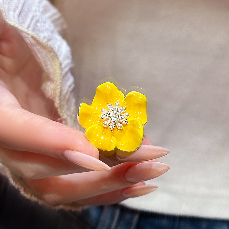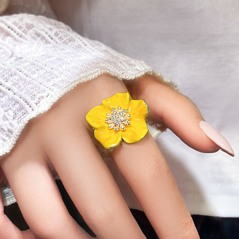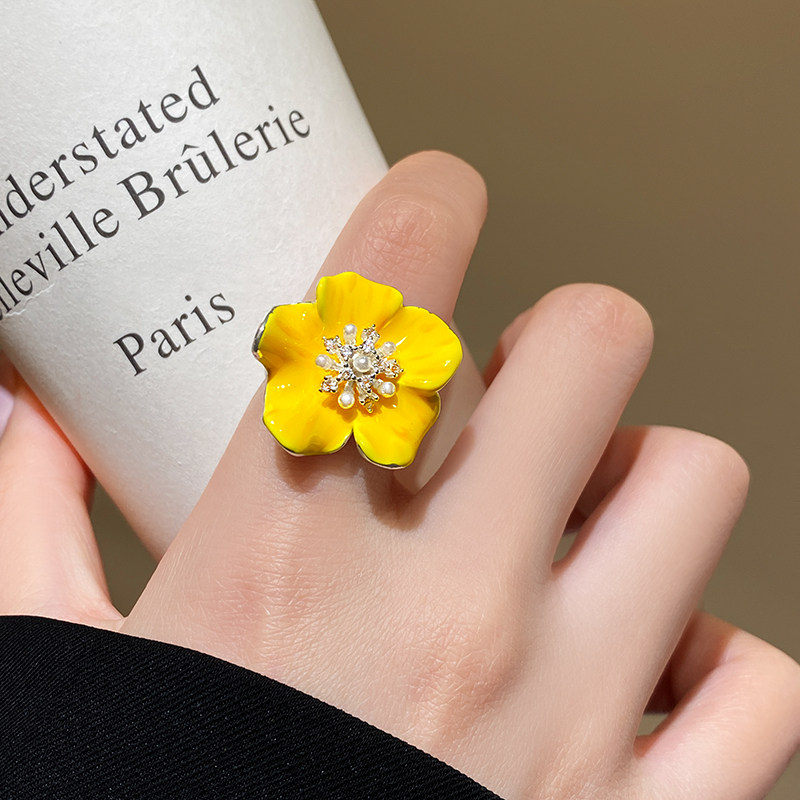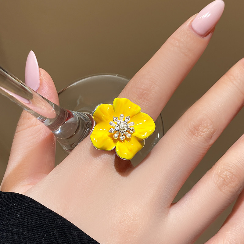 黄色花朵锆石珍珠食指戒指女2026新款爆款轻奢高级感巨好看的指环