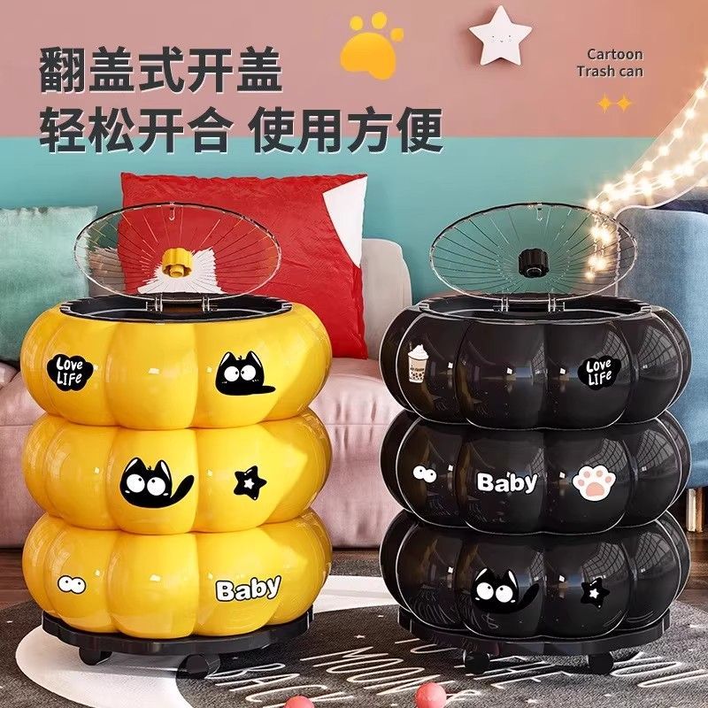 ins风垃圾桶家用落地摆件高颜值潮客厅轻奢移动厨房高档带盖纸篓