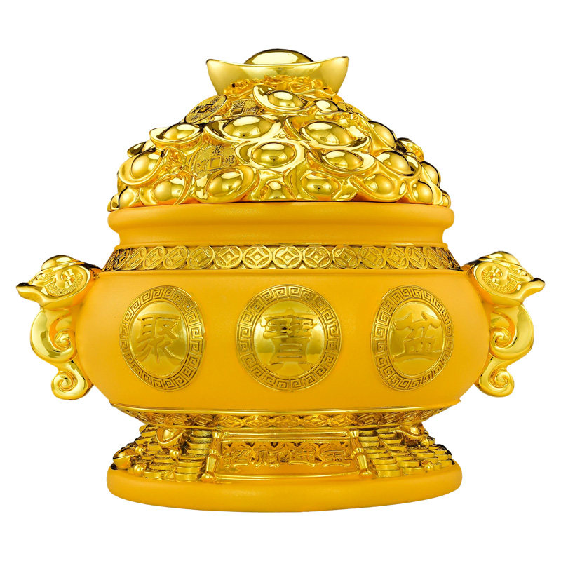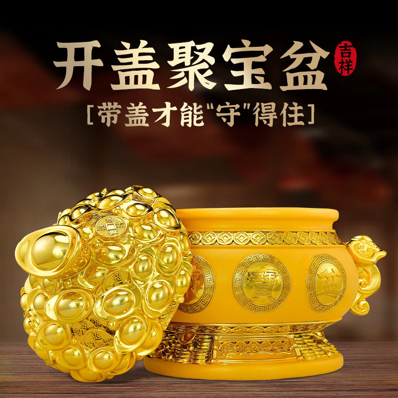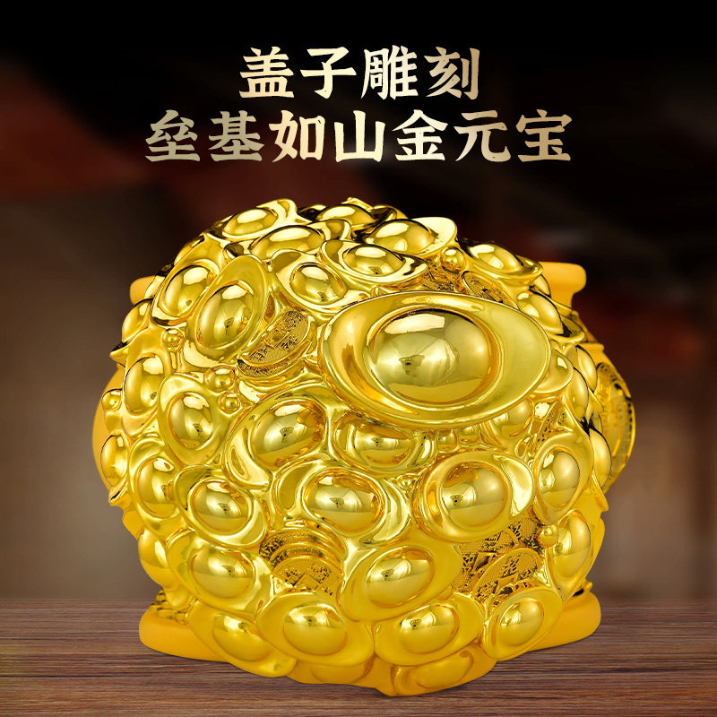 带盖子聚宝盆摆件有盖招财元宝实用客厅玄关装饰品存钱罐八方来财
