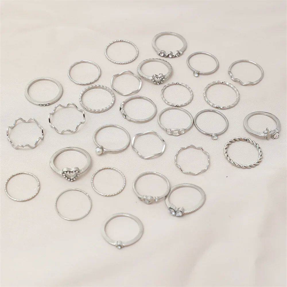 28Pcs Fashion Geometric Knuckle Rings Set For Women Crystal