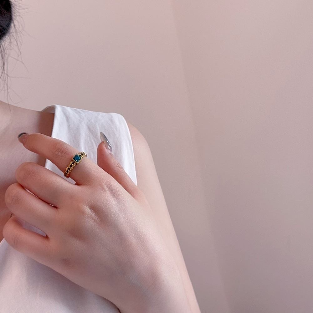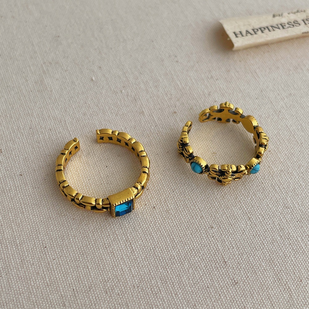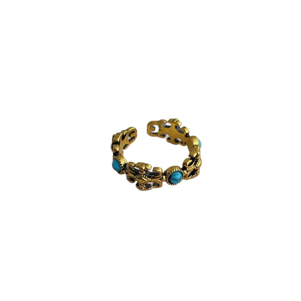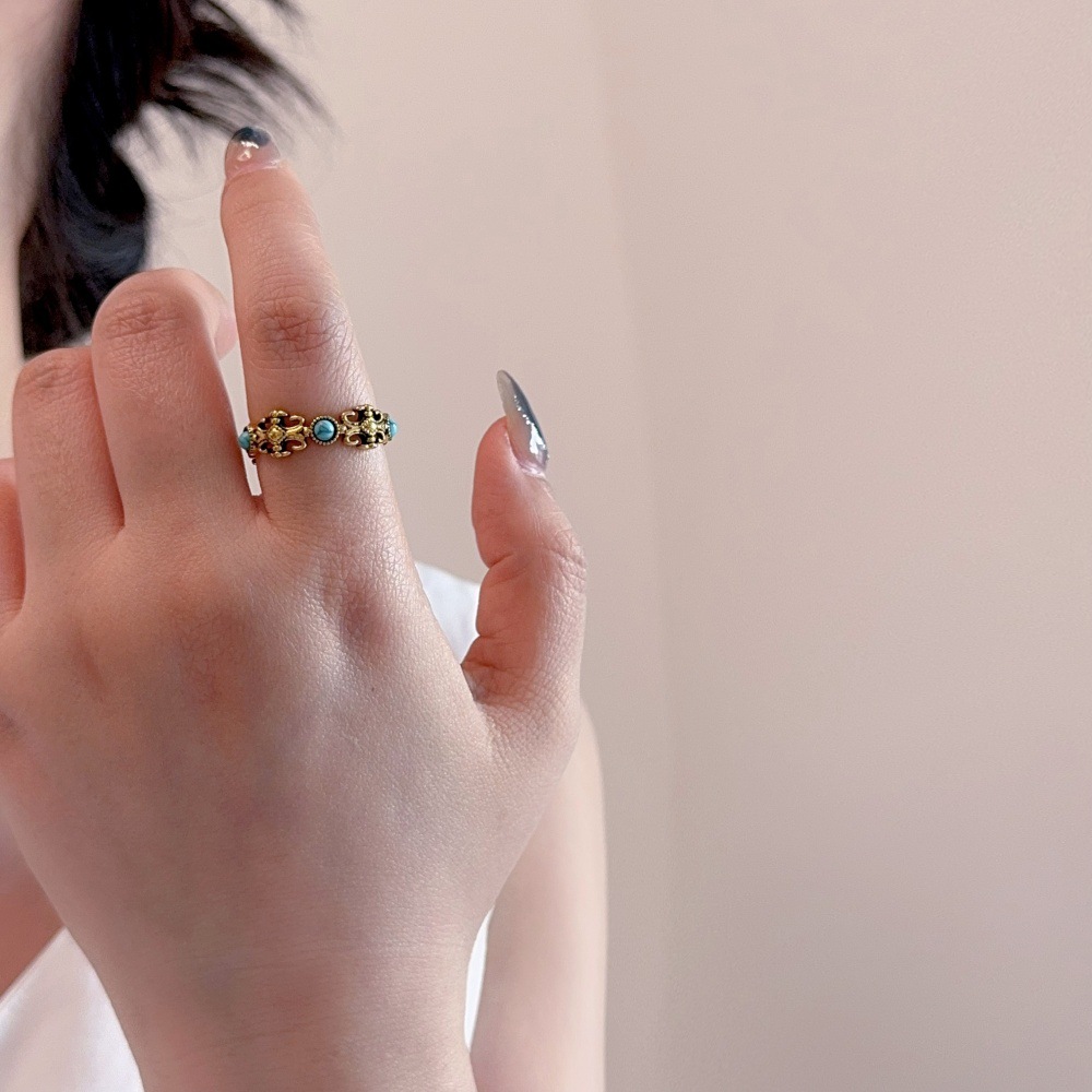 绿松石鸢尾花做旧戒指女时尚复古轻奢高级感食指戒叠戴指环配饰品