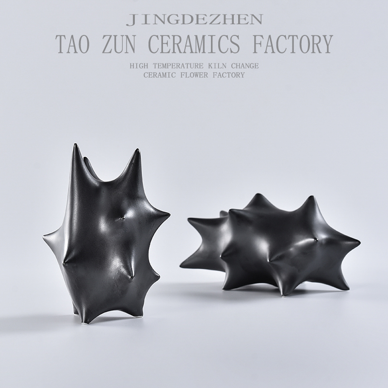 现代简约客厅电视柜极简玄关摆件家居卧室样板间黑色陶瓷摆件