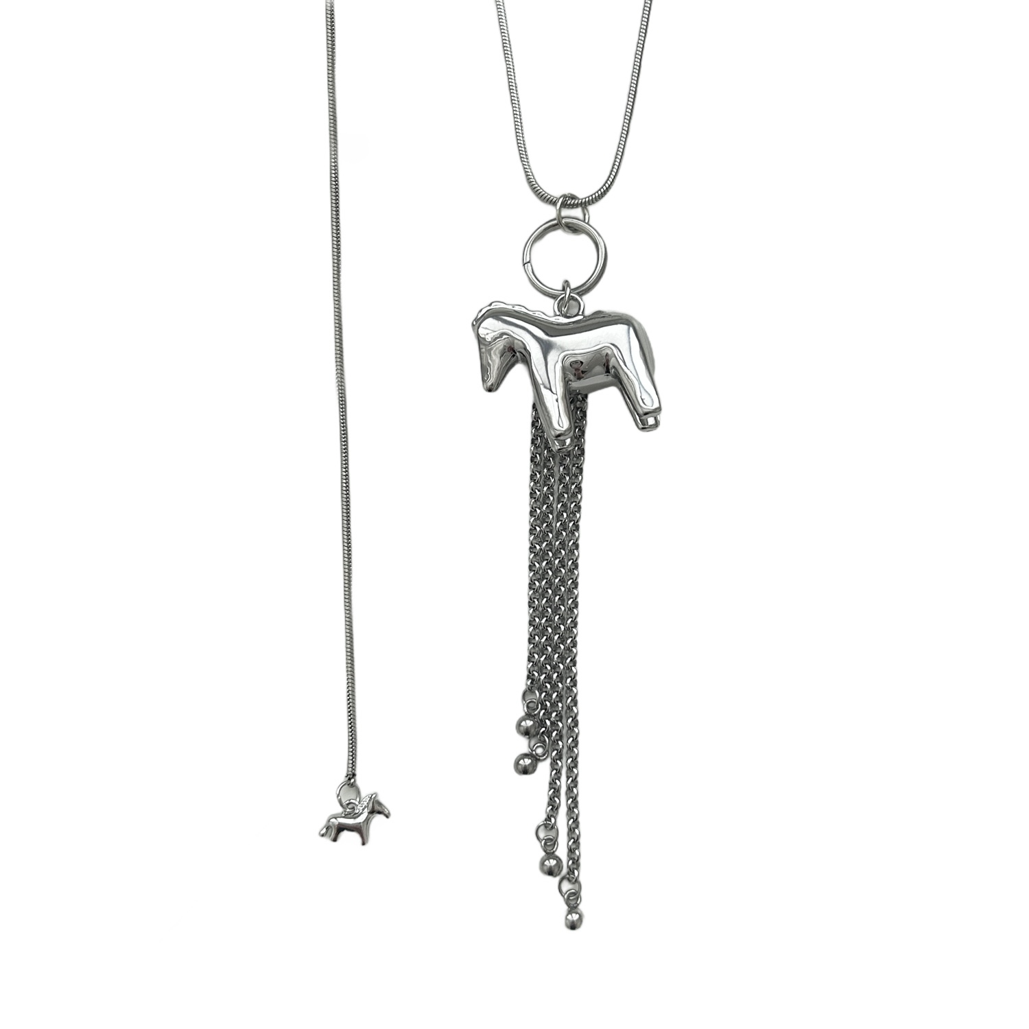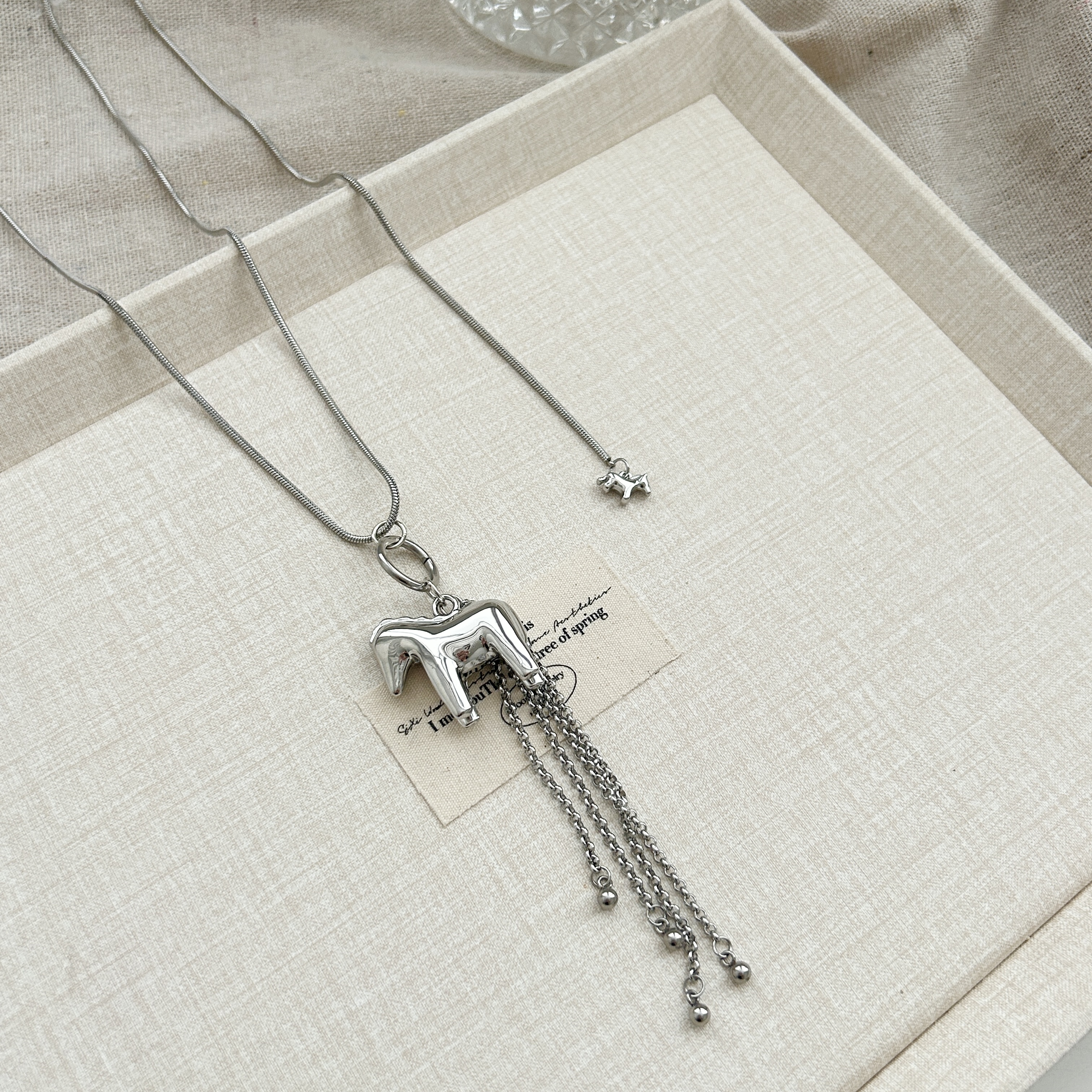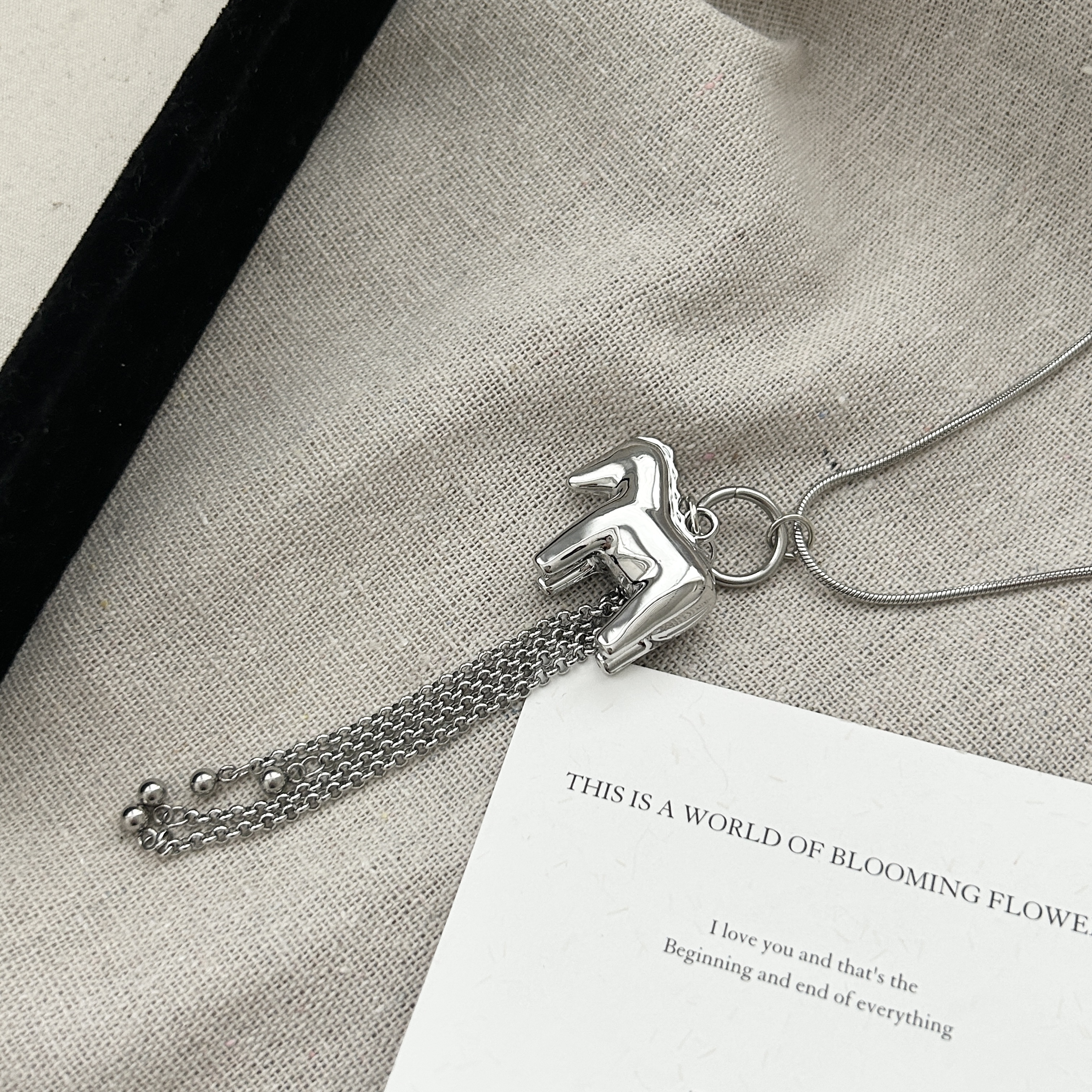 韩国ins风金属小马流苏吊坠项链女小众设计感长款毛衣链颈链配饰