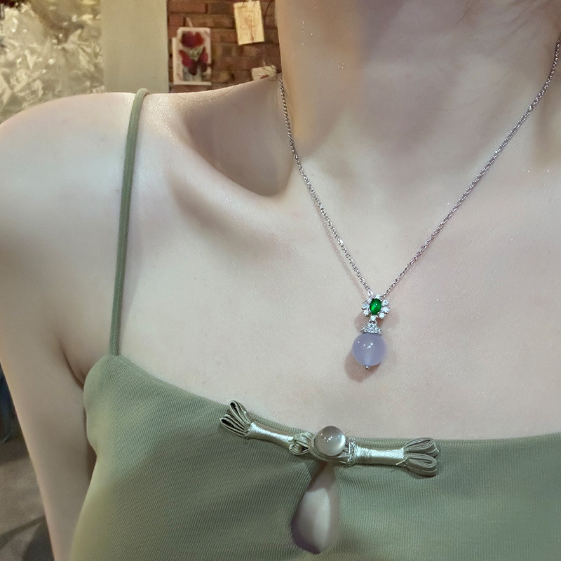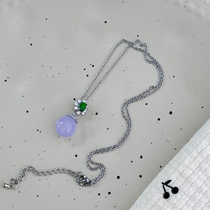 新中式气质锆石花朵紫色珠珠项链女轻奢高级感颈链锁骨链国风颈链