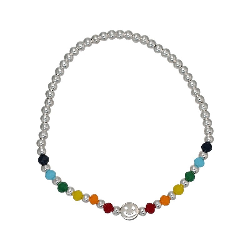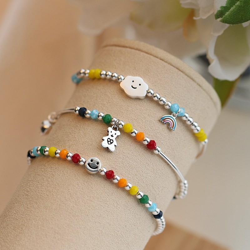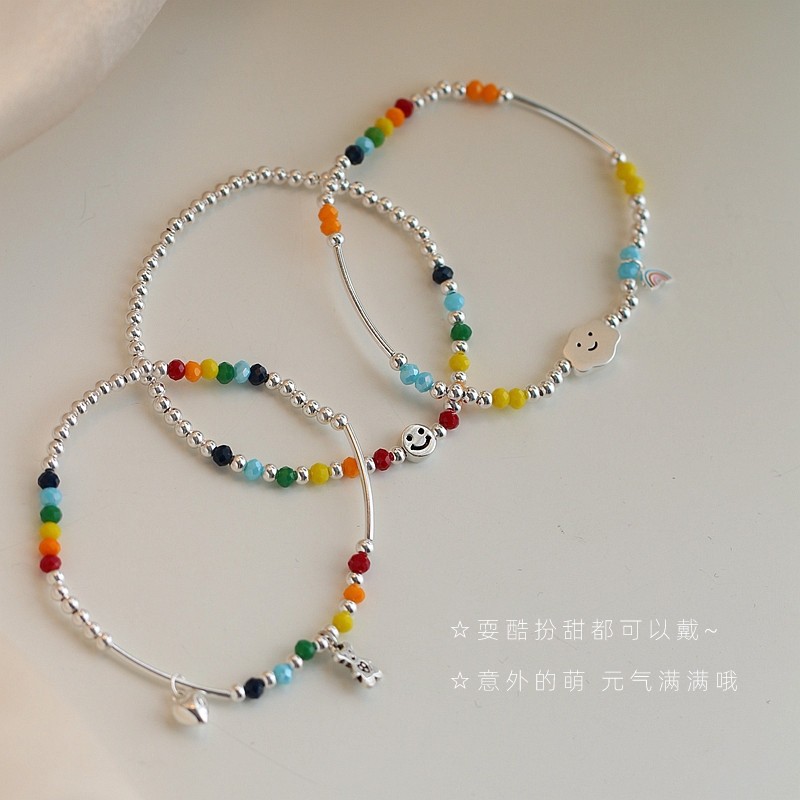 彩虹串珠手链女生秋冬925纯银ins小众设计彩色小熊笑脸云朵手饰品