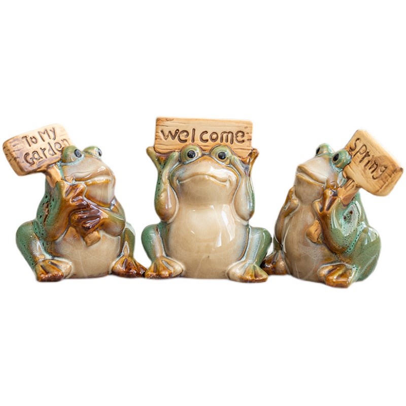 美式青蛙家居装饰可爱室内客厅儿童房庭院摆设英文指示牌一套三款
