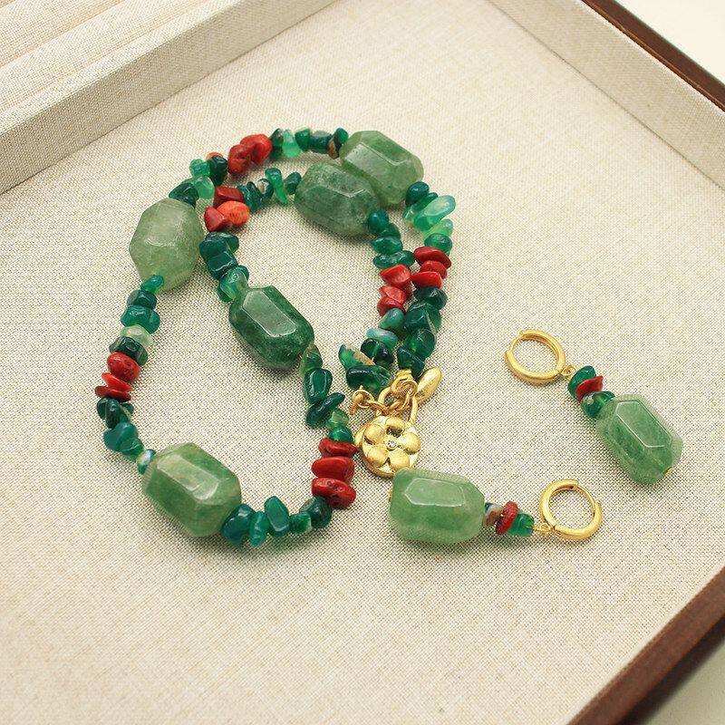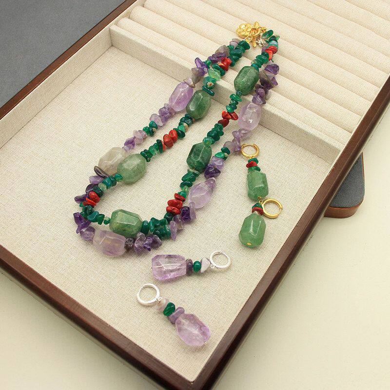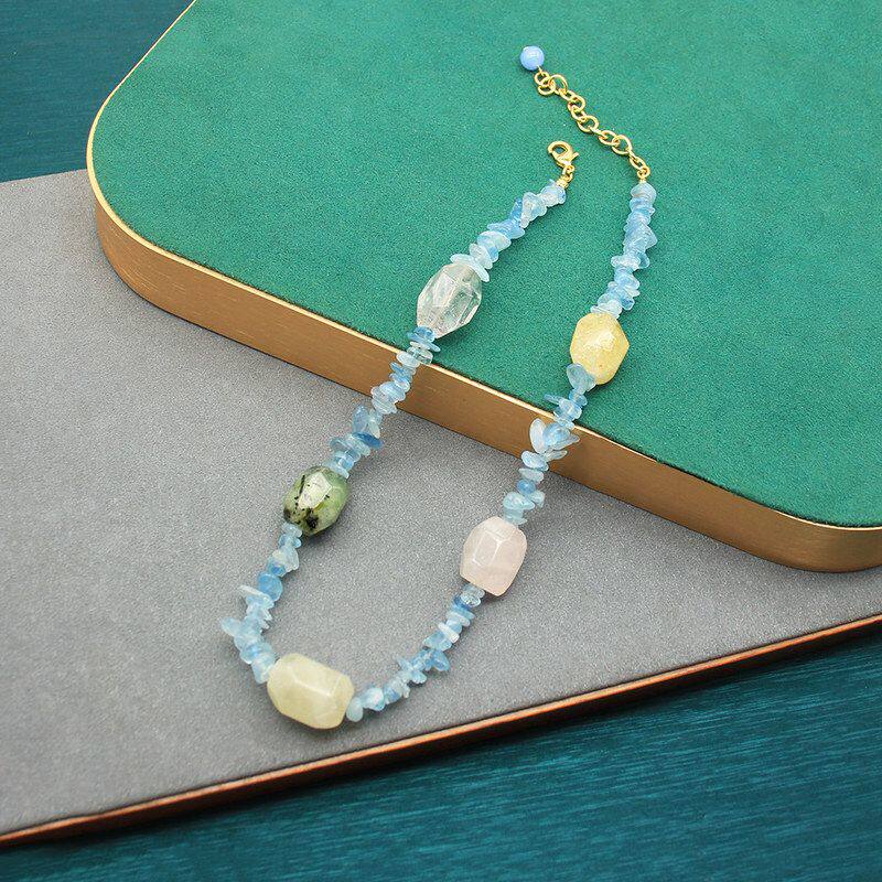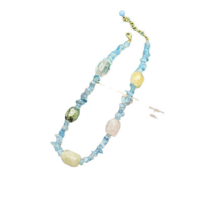 春夏新款小清新蓝色碎石项链串珠紫绿水晶耳饰简约设计浪漫假日风