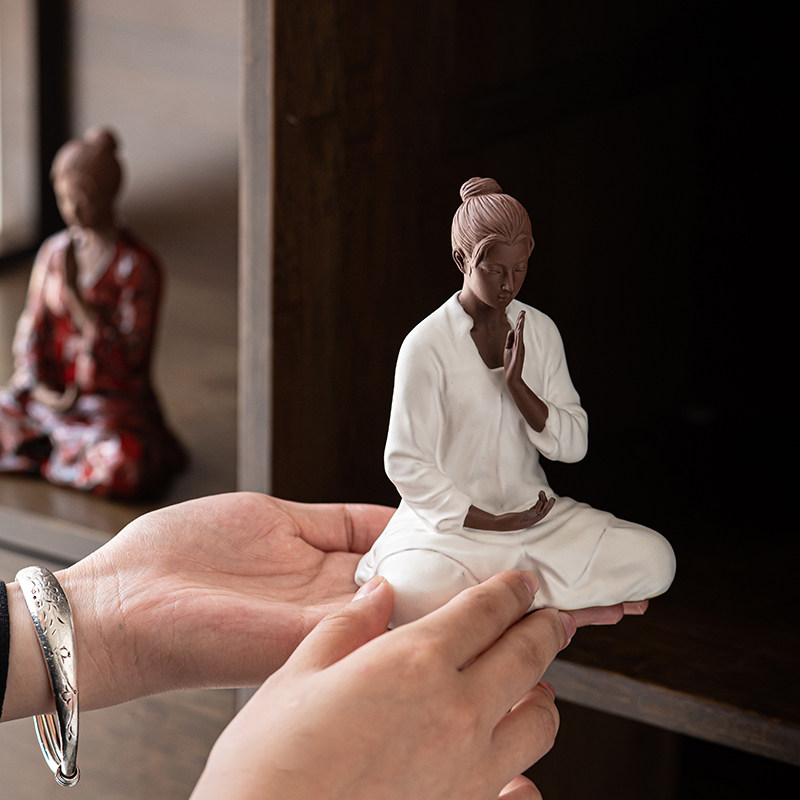 久造创意陶瓷中国风美女人物摆件禅意鱼缸造景家居客厅中式装饰品