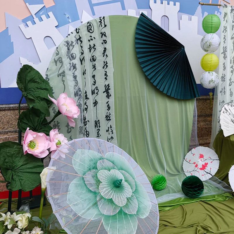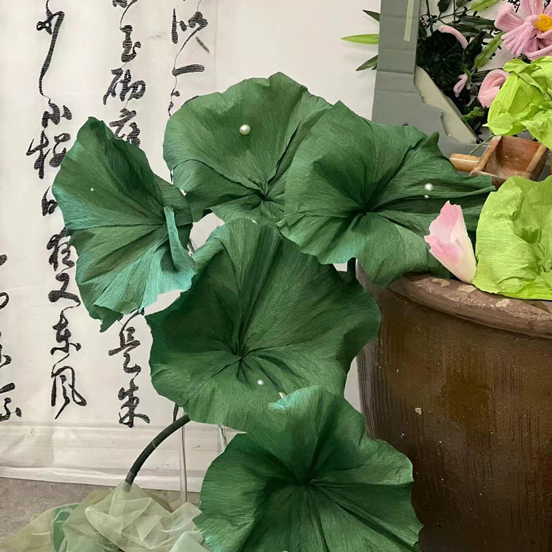 幼儿园环创新中式摆件荷叶荷花手工花diy材料绿色褶皱纹纸背景纸