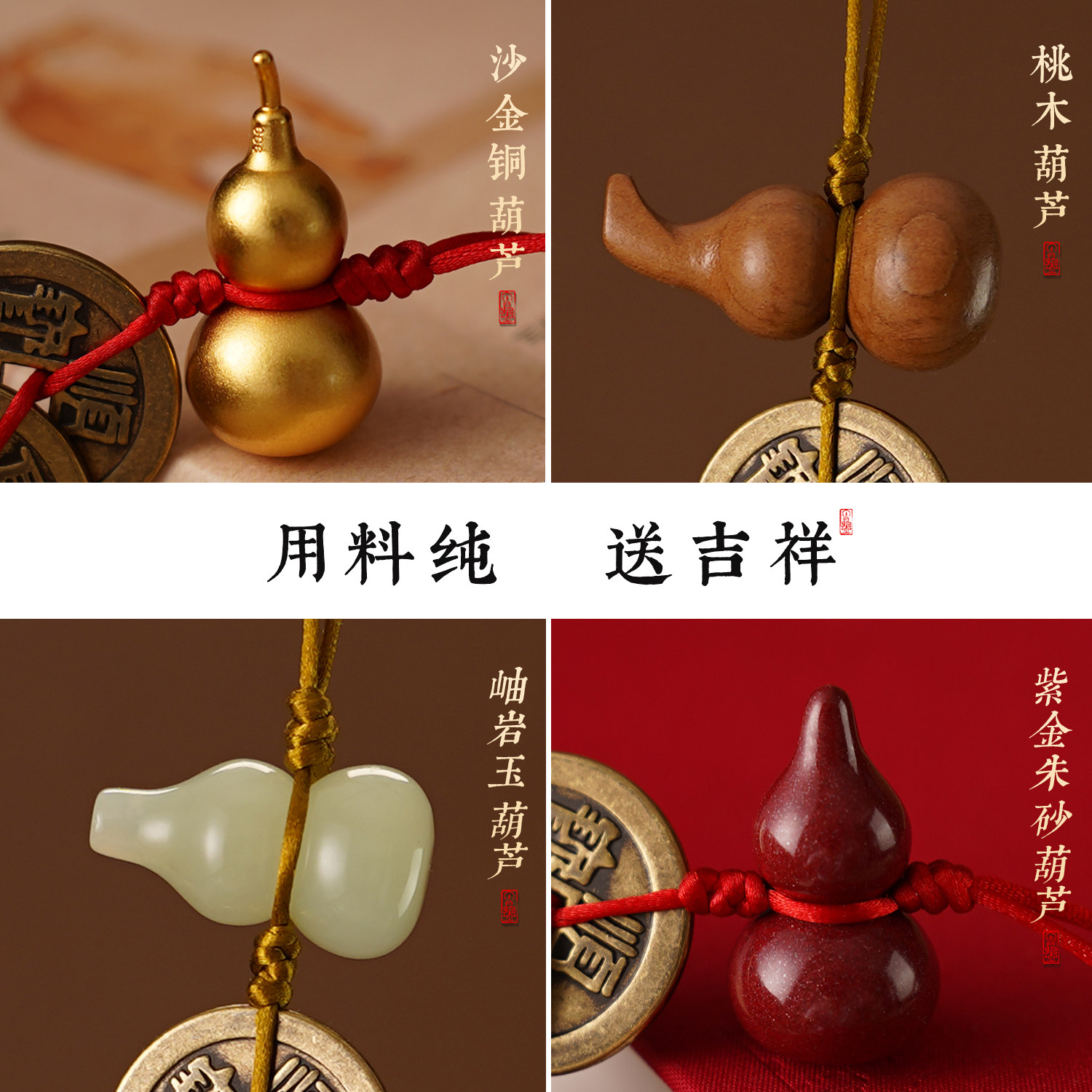 纯黄铜五帝钱门对门挂件沙金铜葫芦红黄绳铜钱真品六帝钱客厅摆件