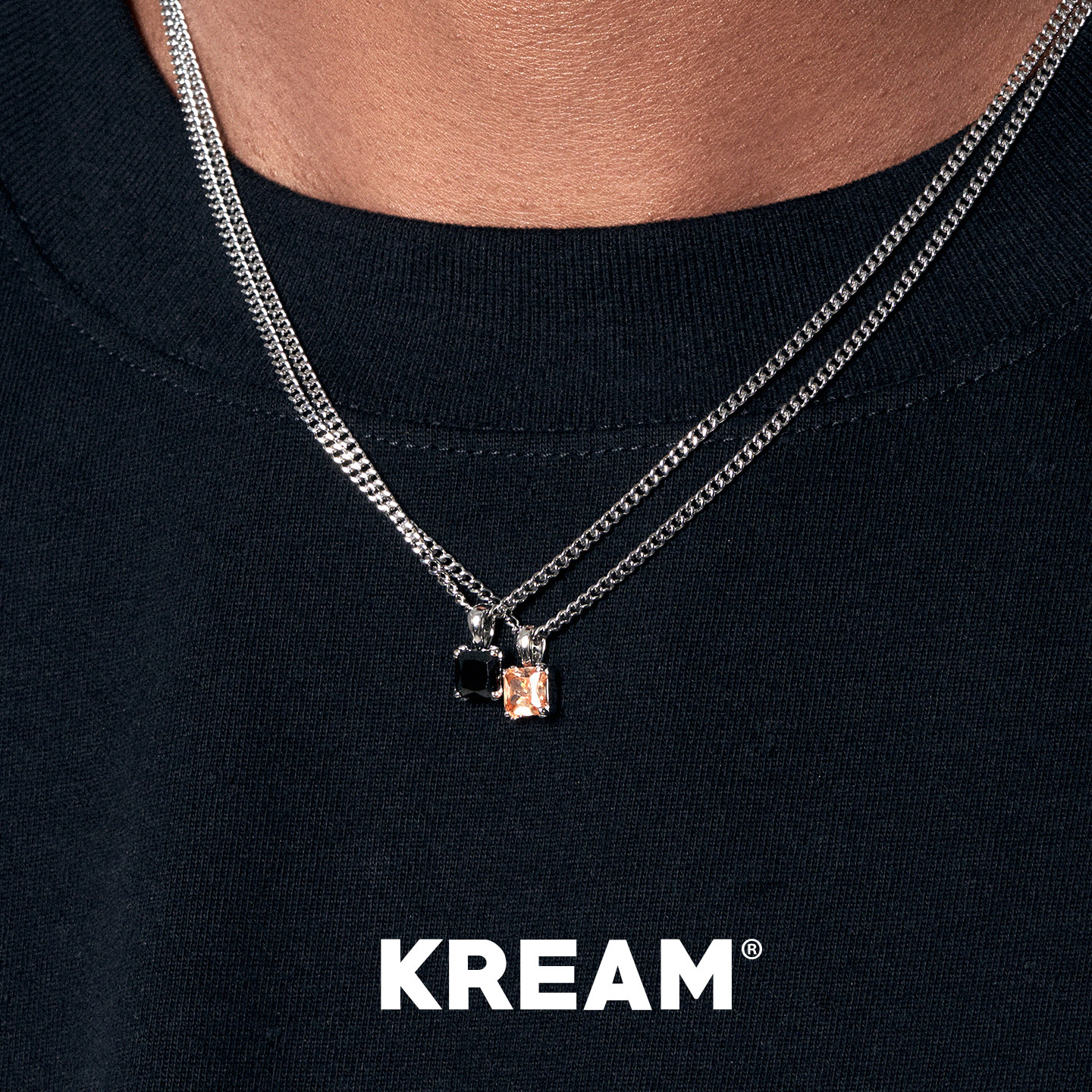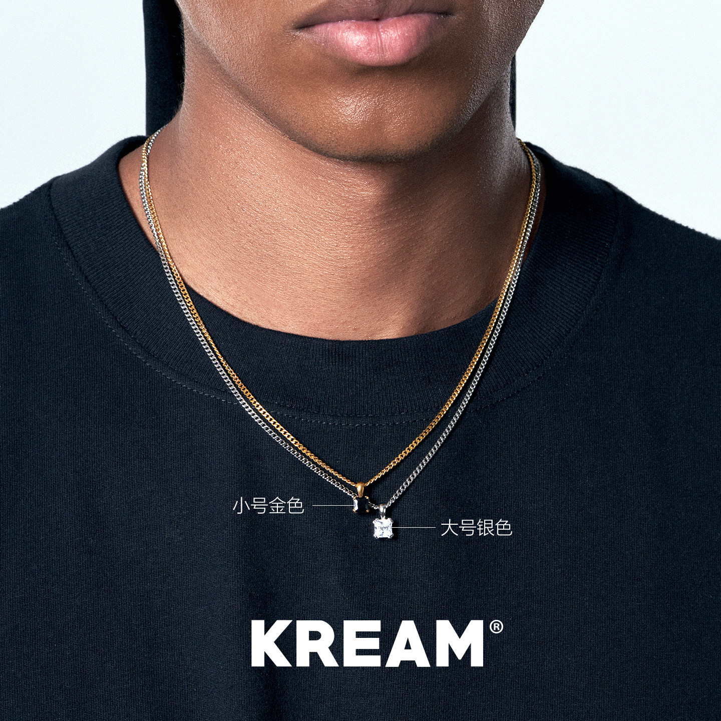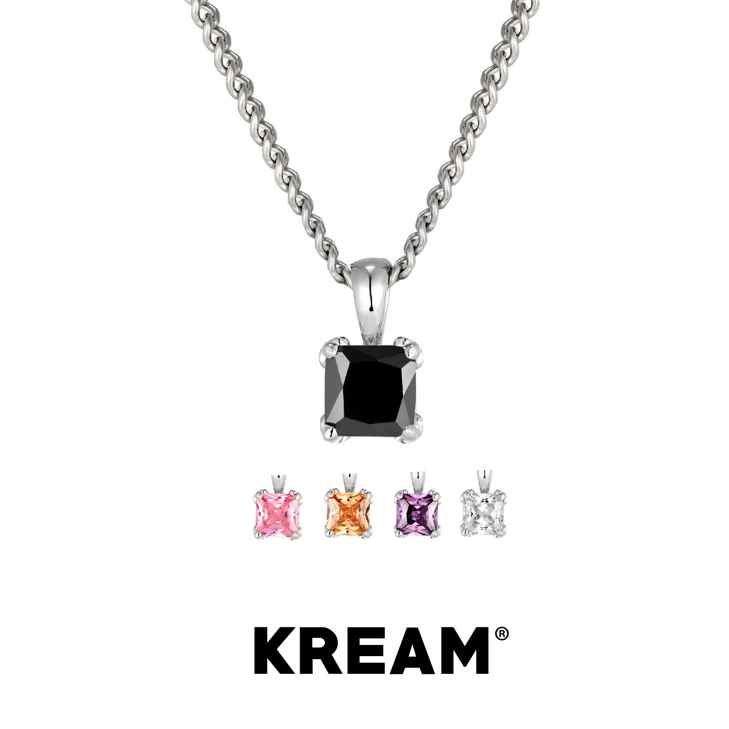 KREAM 925银彩色锆石吊坠男嘻哈女欧美潮流项链情侣锁骨毛衣链