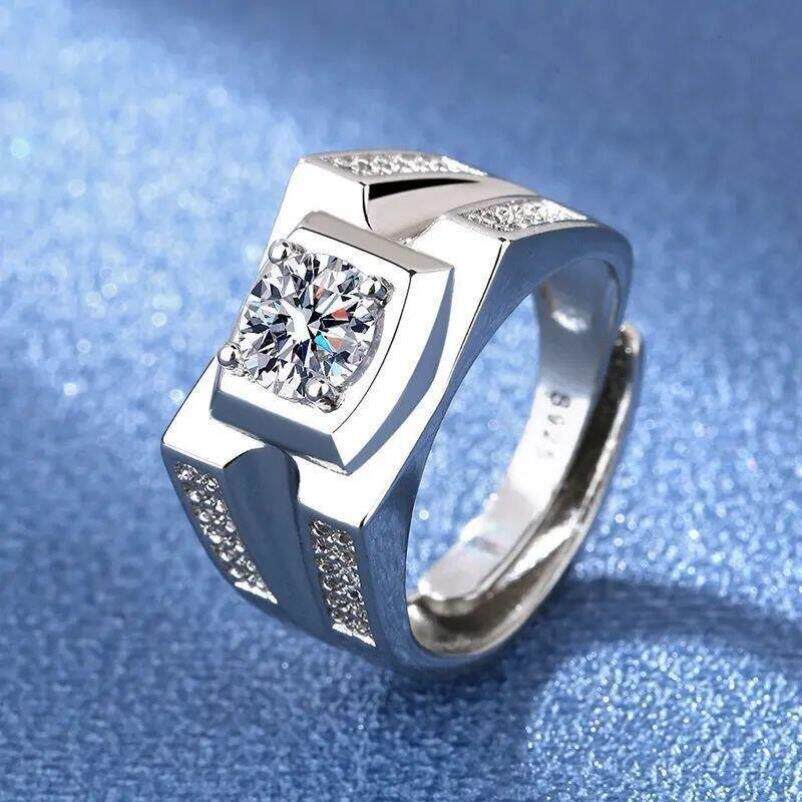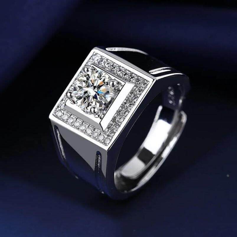 925 Sterling Silver Rings For men Shining crystal adjustable
