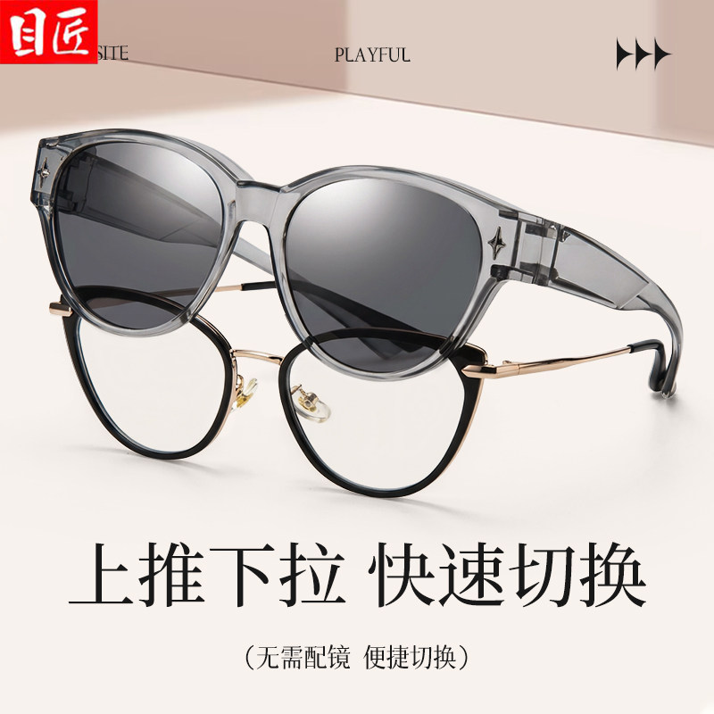 近视专用猫眼墨镜套镜女款高级感可套眼镜叠戴外配偏光灰框太阳镜