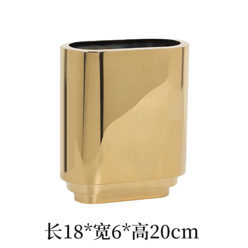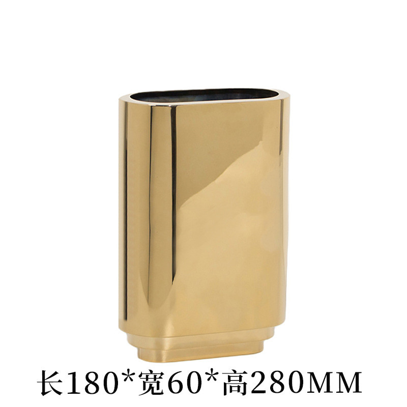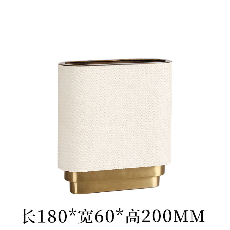 现代极简扁形金属样板间椭圆创意皮艺花瓶桌面摆件轻奢花器装饰品