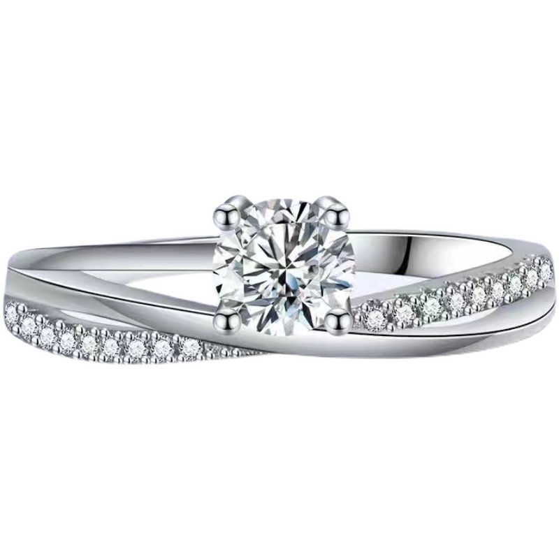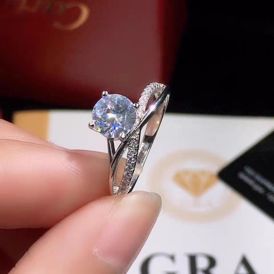 PT950铂金镶嵌D色莫桑石满钻流星不规则交叉戒指纯银个性指环时尚