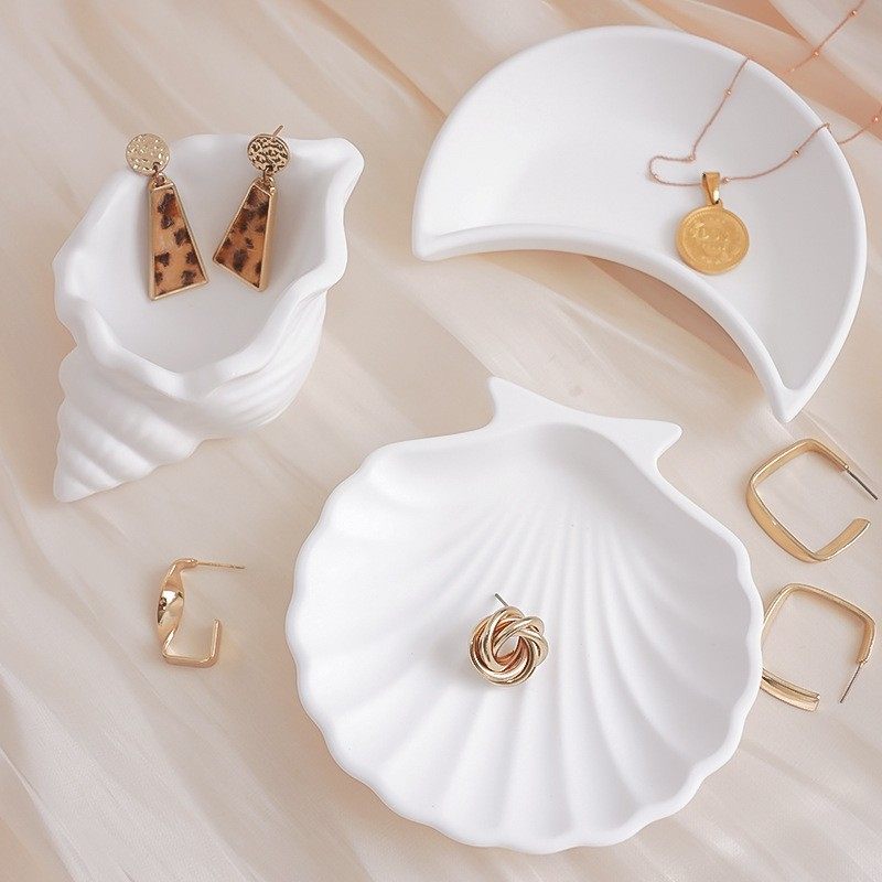 ins风白色贝壳海螺小碟子收纳盘饰品摄影背景装饰摆件拍照道具
