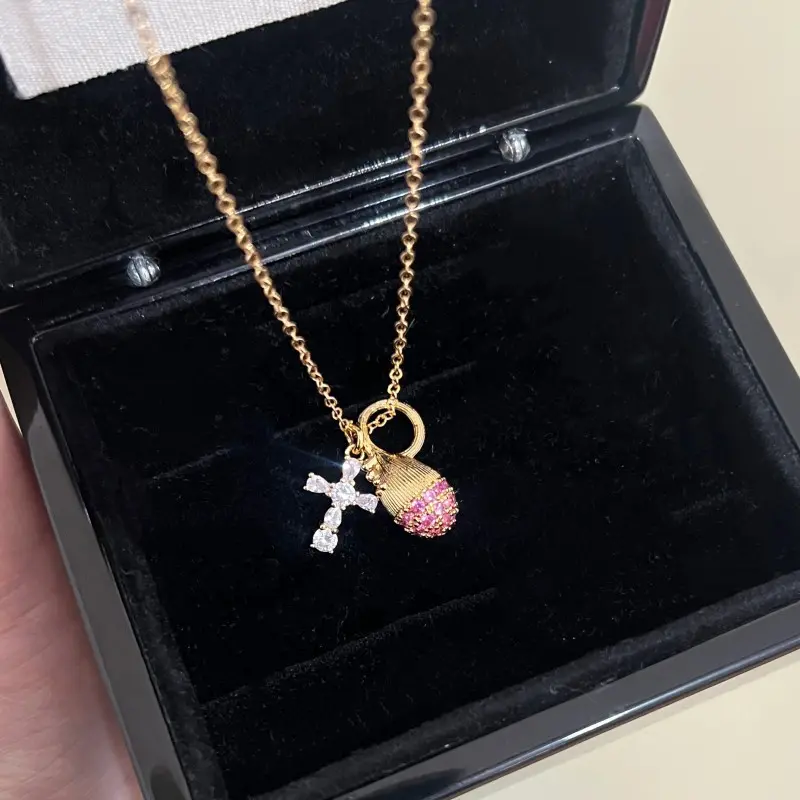 复古精致镶钻十字架小松果项链时尚可爱简约小众设计高级感锁骨链