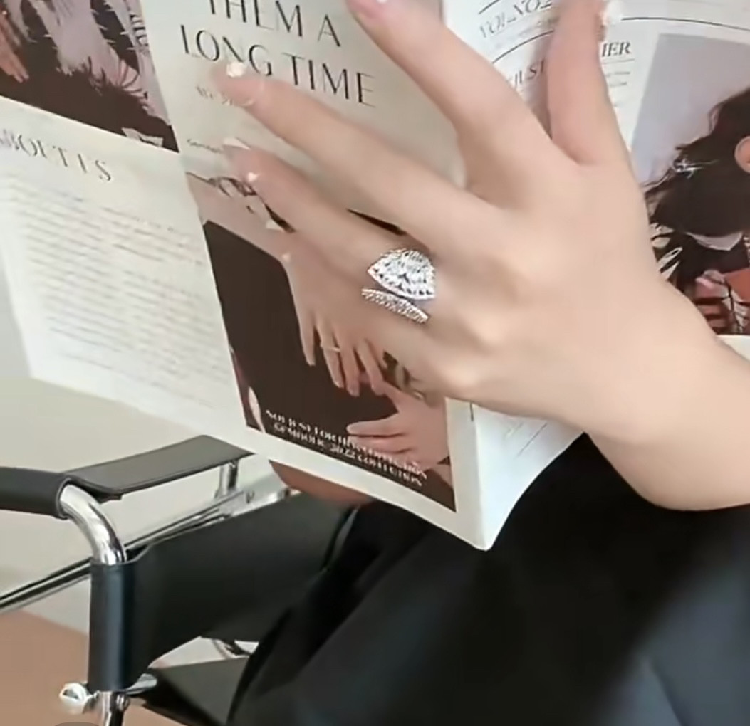 April&Grace小众设计师925银甜美礼物网红原创百搭个性重工扇子戒