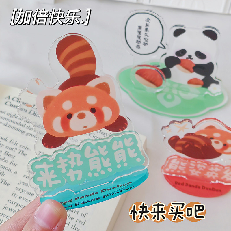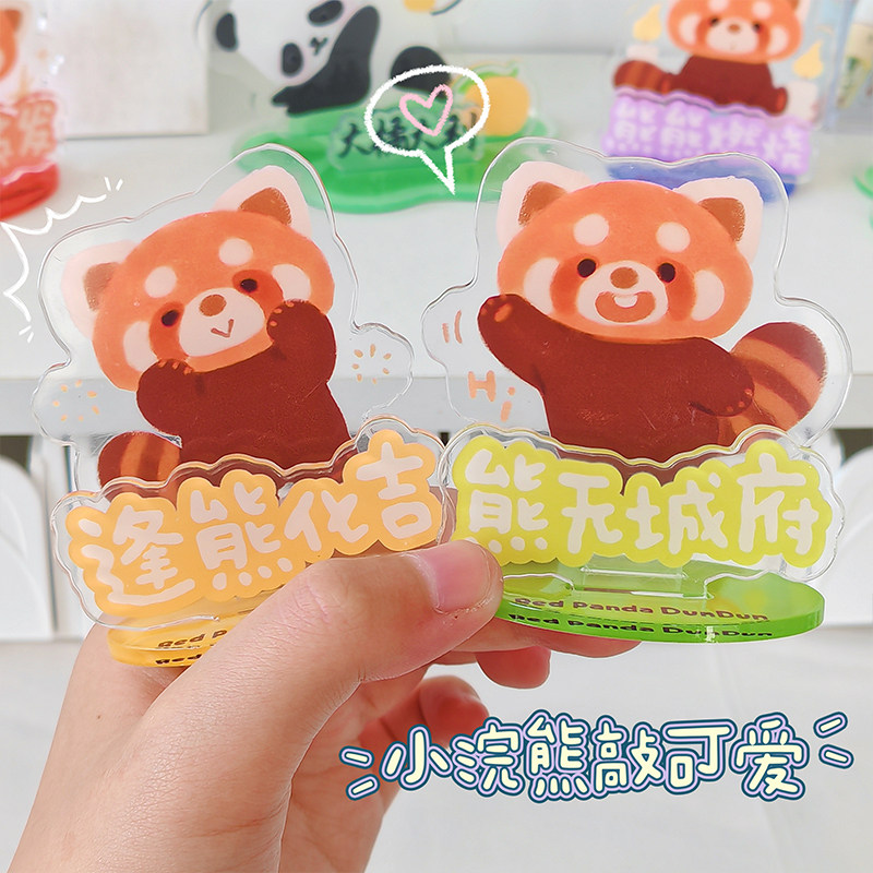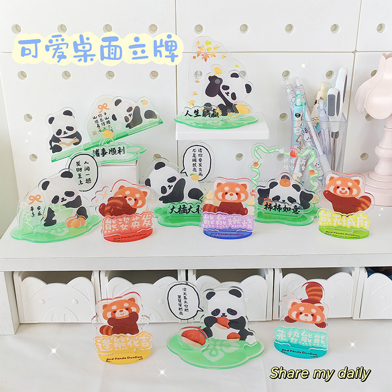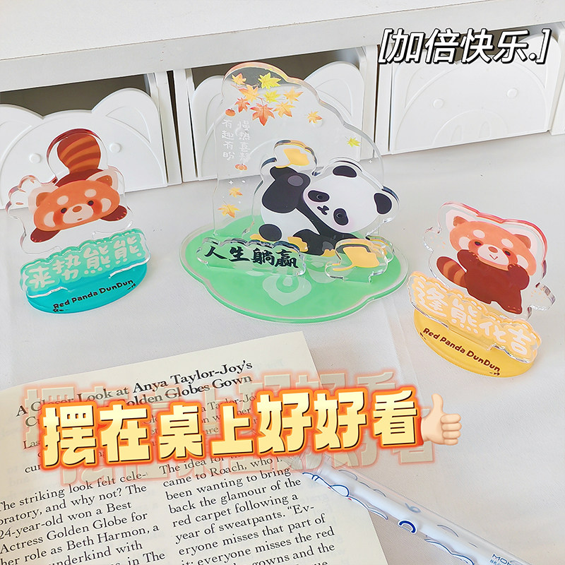 熊猫秋收冬藏亚克力立牌盲盒跷跷板高级感办公室桌面diy摆件饰品