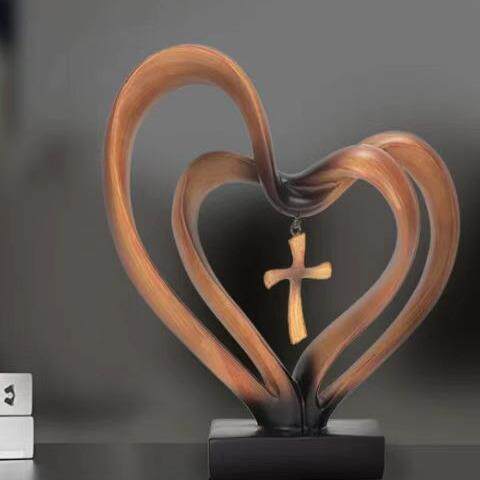 跨境新款爱心桌面摆件现代简约两颗星办公桌装饰树脂工艺品摆件