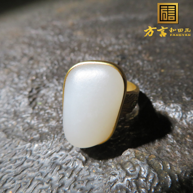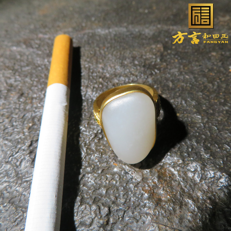 方言和田玉罕见精品收藏级特惠新疆羊脂白玉籽料金镶玉原石戒指w1