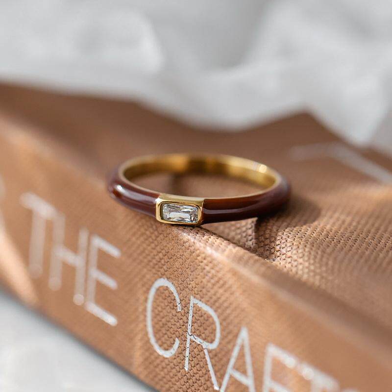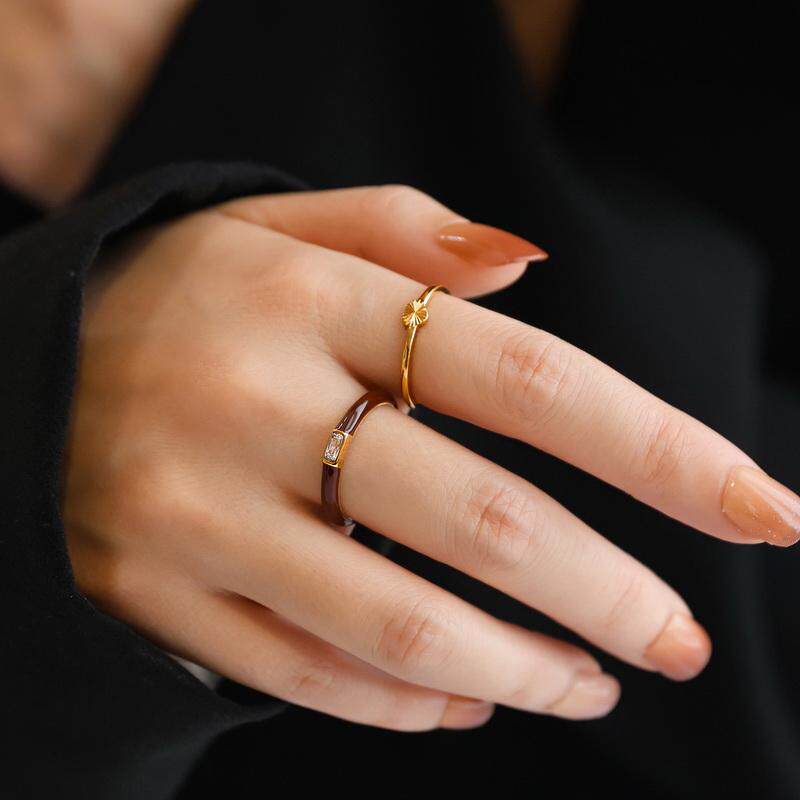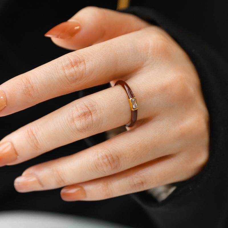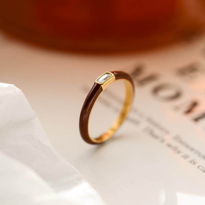不掉色~安可拉红方锆石酒红滴釉戒指女食指个性潮高级感设计礼物
