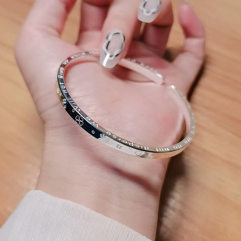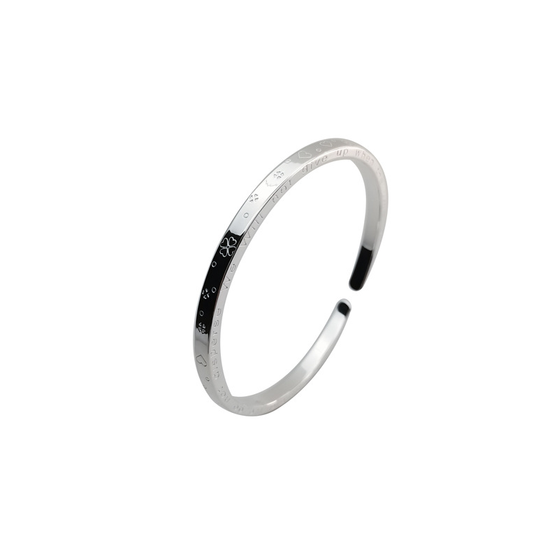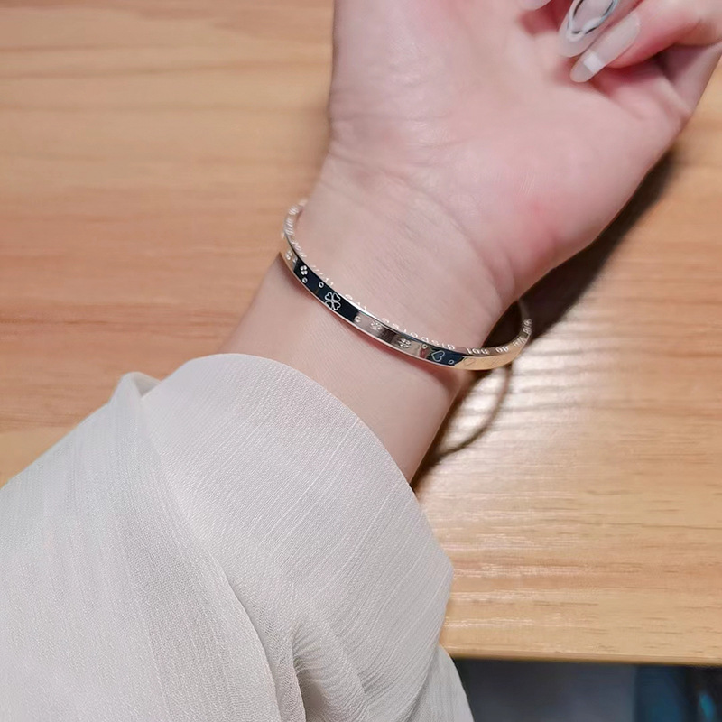 入梦s999足纯银手镯子四叶草开口手环简约时尚英文手饰生日礼品女