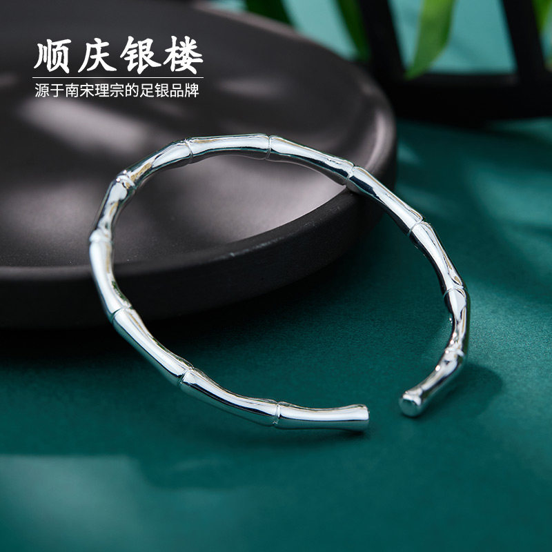 顺庆银楼足银9999竹节彩丝手镯新中式简约精致纯银手镯送女友礼物