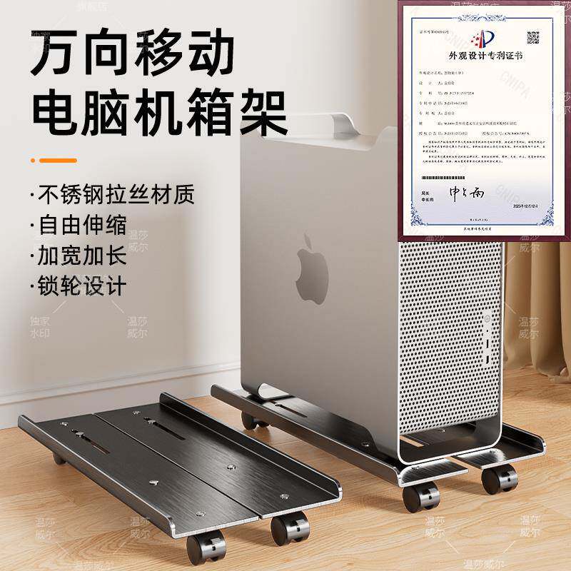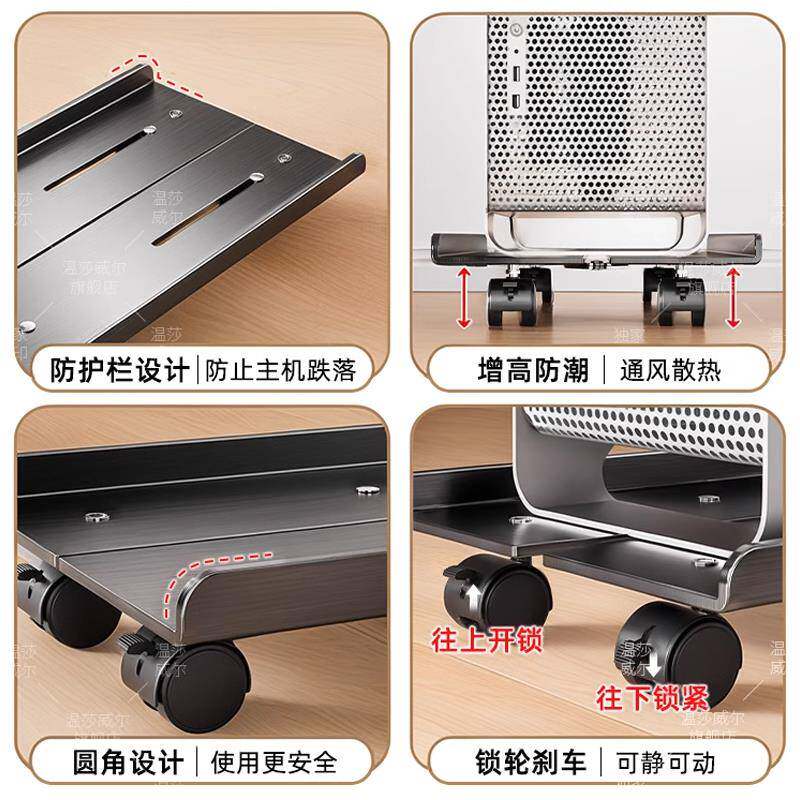 电脑主机托架不锈钢桌下可移动放置台式机箱滑轮底座置物支架托盘