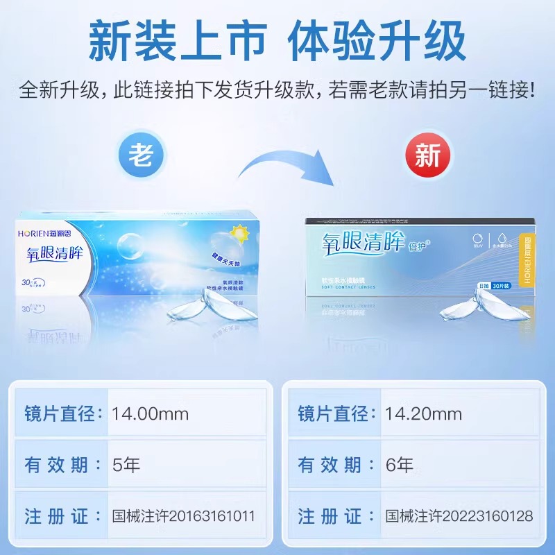 海俪恩氧眼清眸倍护日抛30片*2盒60片一次性隐形近视眼镜旗舰隐型