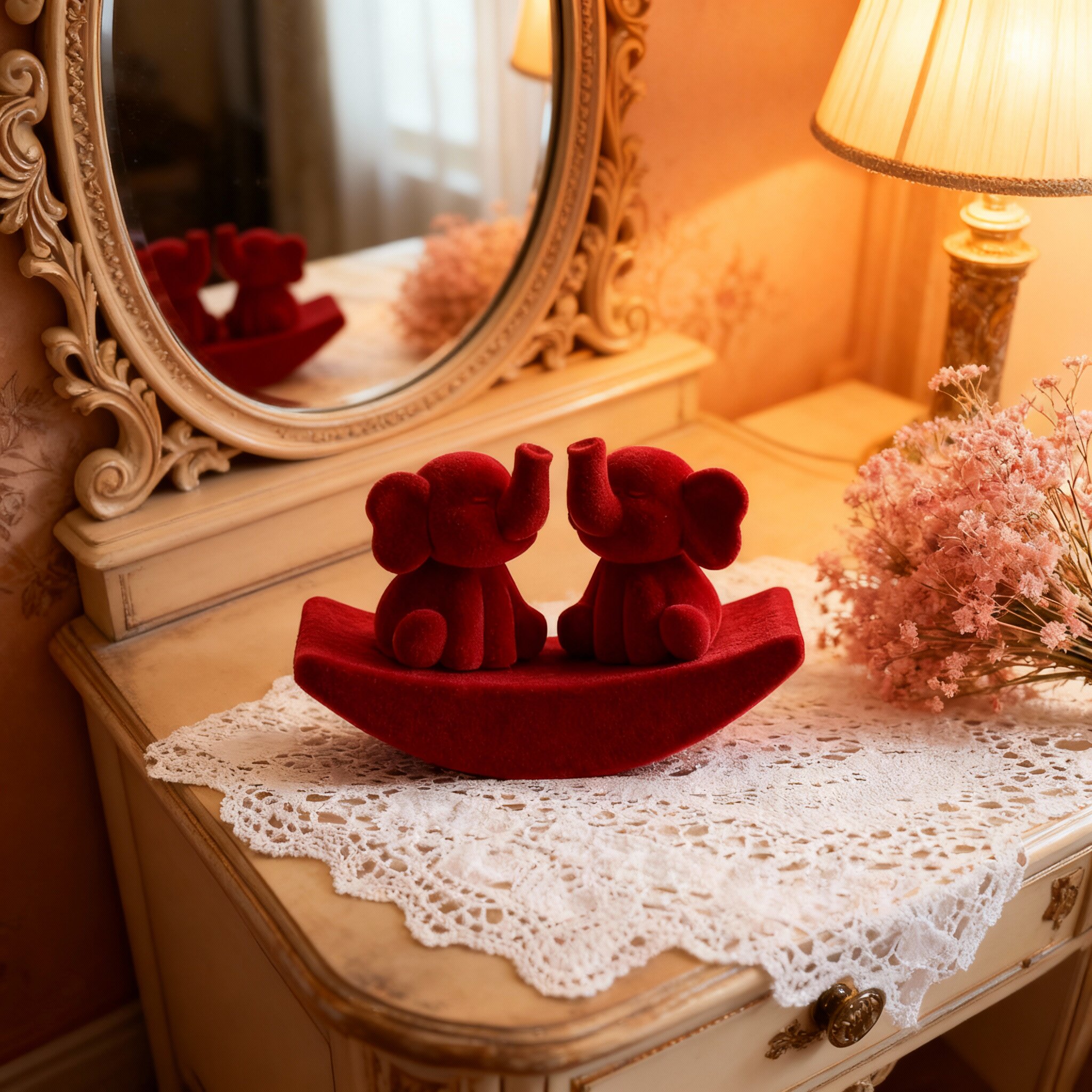 红色大象情侣摆件新年家居装饰品结婚礼物吉祥物好运