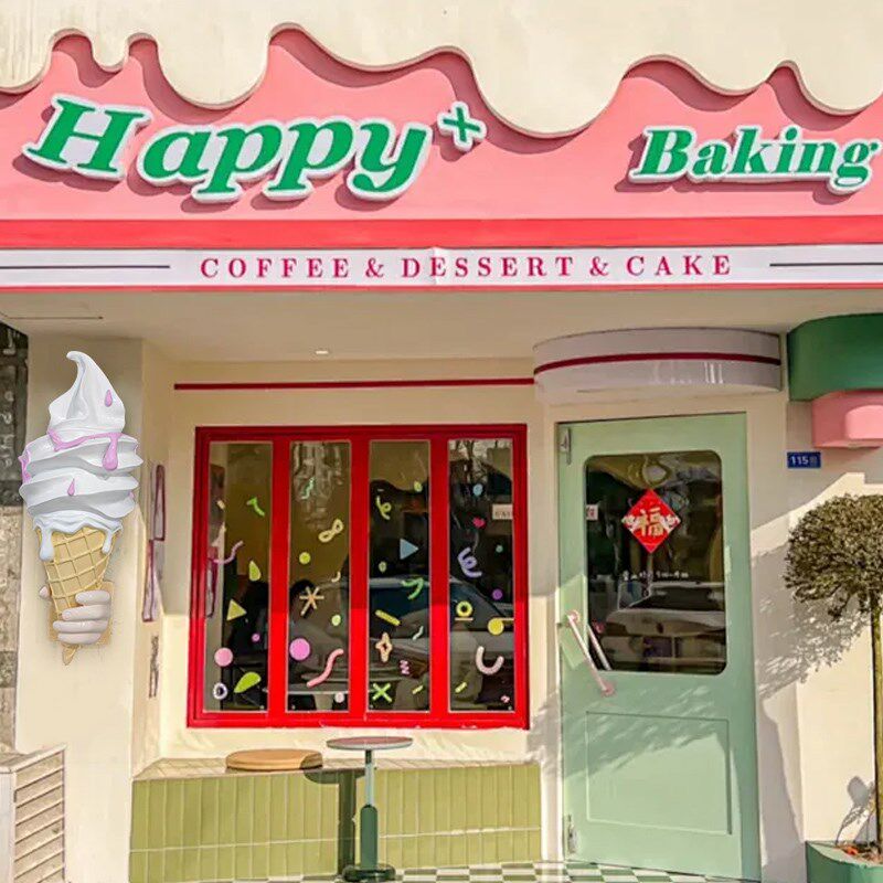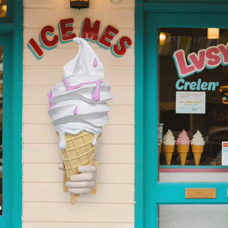 门头壁挂冰淇淋雕塑摆件卡通融化冰激凌雪糕模型发光亮立体甜品店