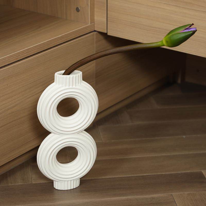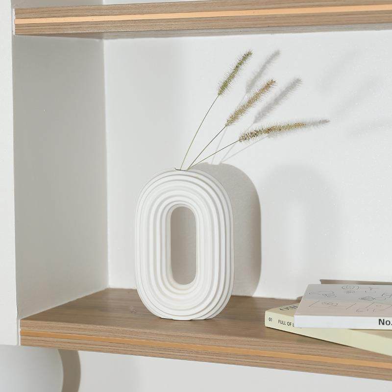 创意现代简约白色条纹陶瓷花瓶摆件客厅干花插花桌面软装饰品