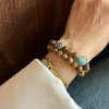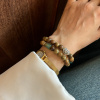 青绿 原创新中式古风绿檀搭配玛瑙古朴稳静双圈弹力手链手串国风