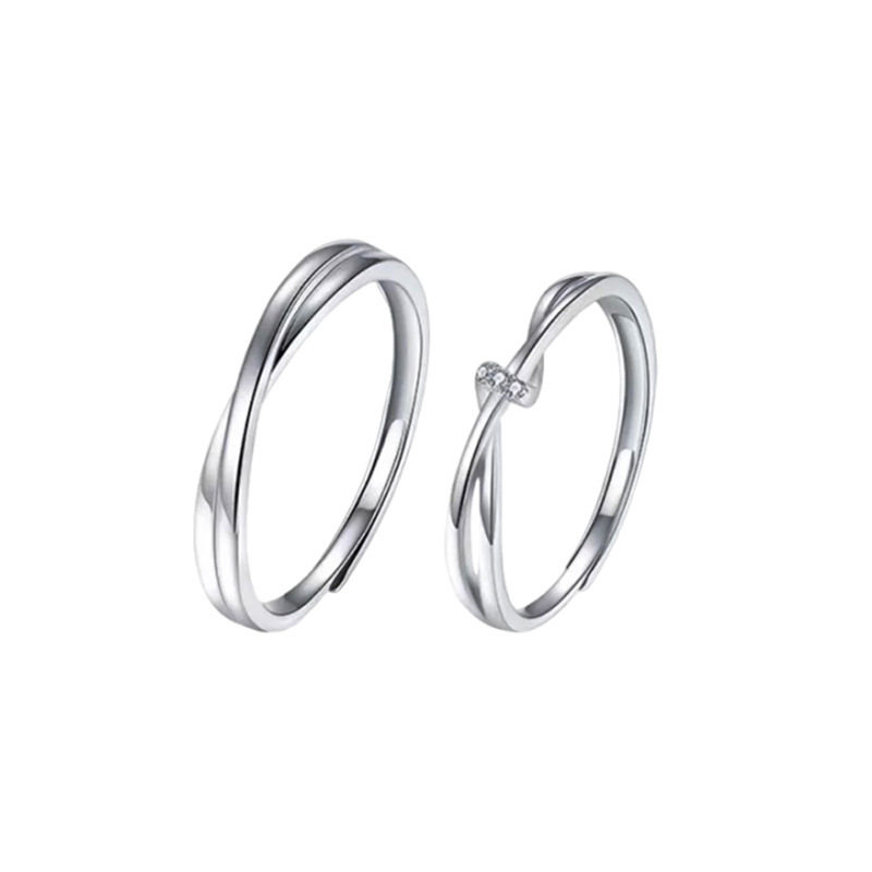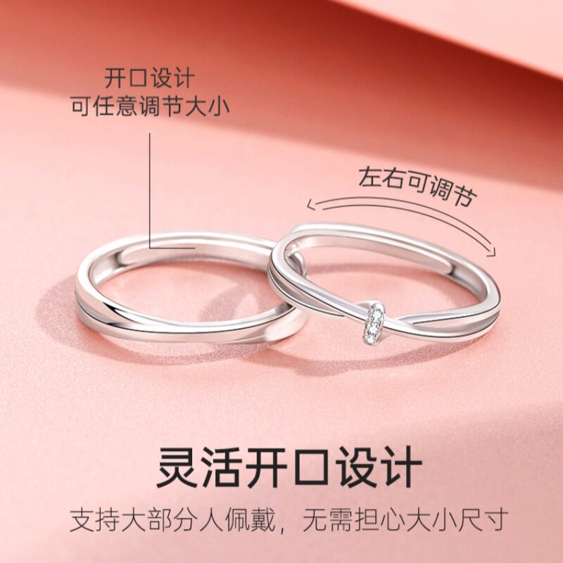 S925纯银双生结情侣戒指男女款新款百搭设计镶钻交织开口对戒礼物