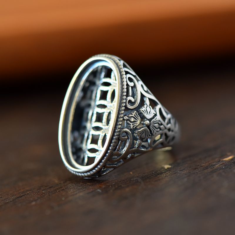 S925纯银戒指空托复古男女款网底13*1615*25DIY蜜蜡松石玉石镶嵌