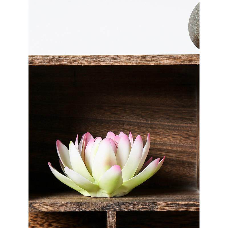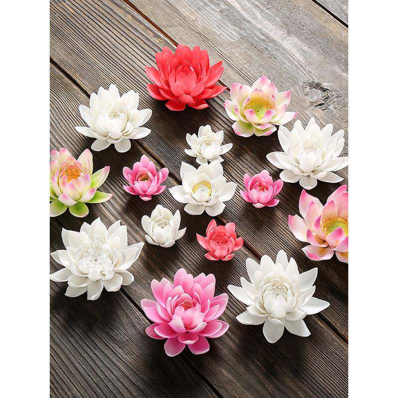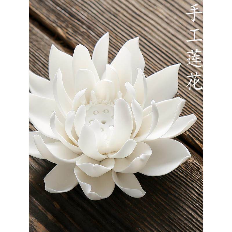纯手工陶瓷莲花白色粉色黄色艺术品家居搭配博古架根雕摆件