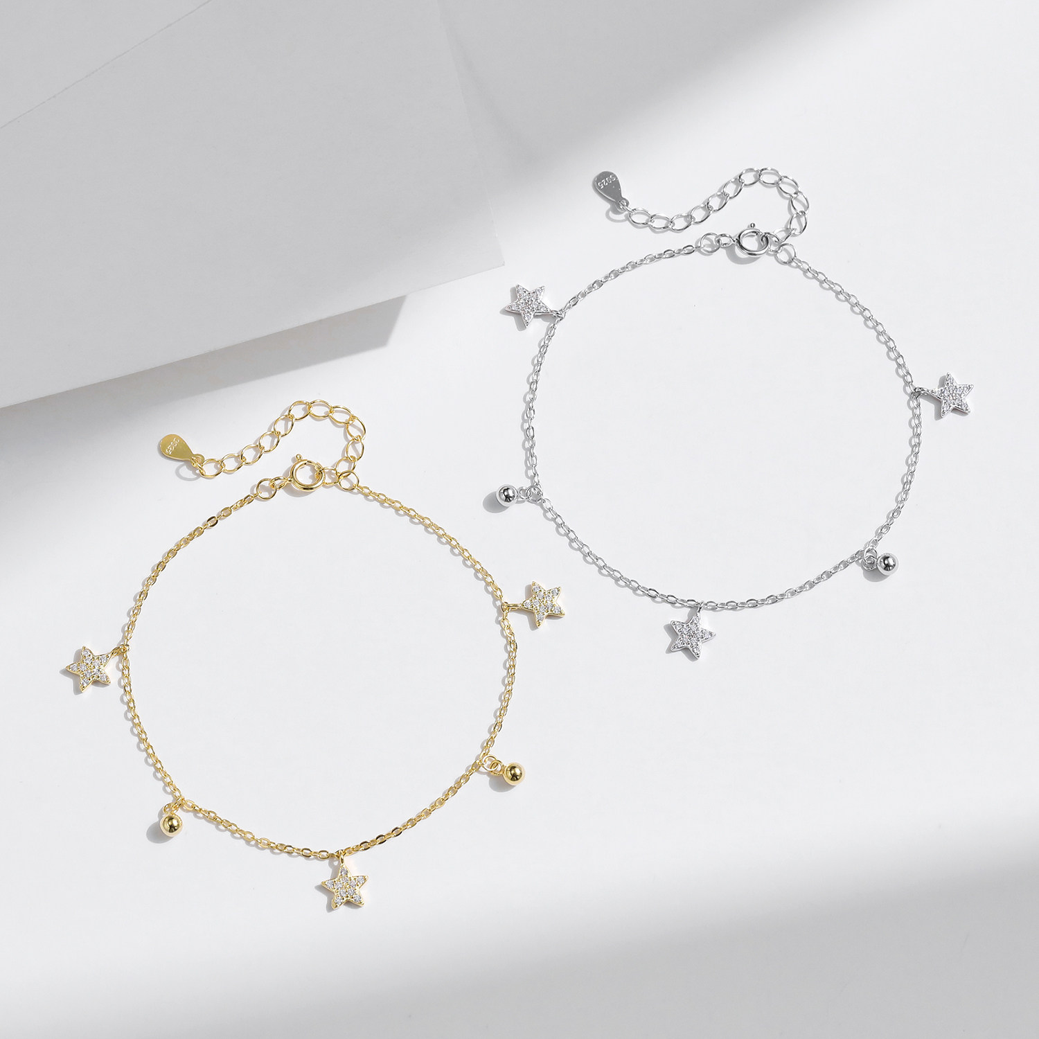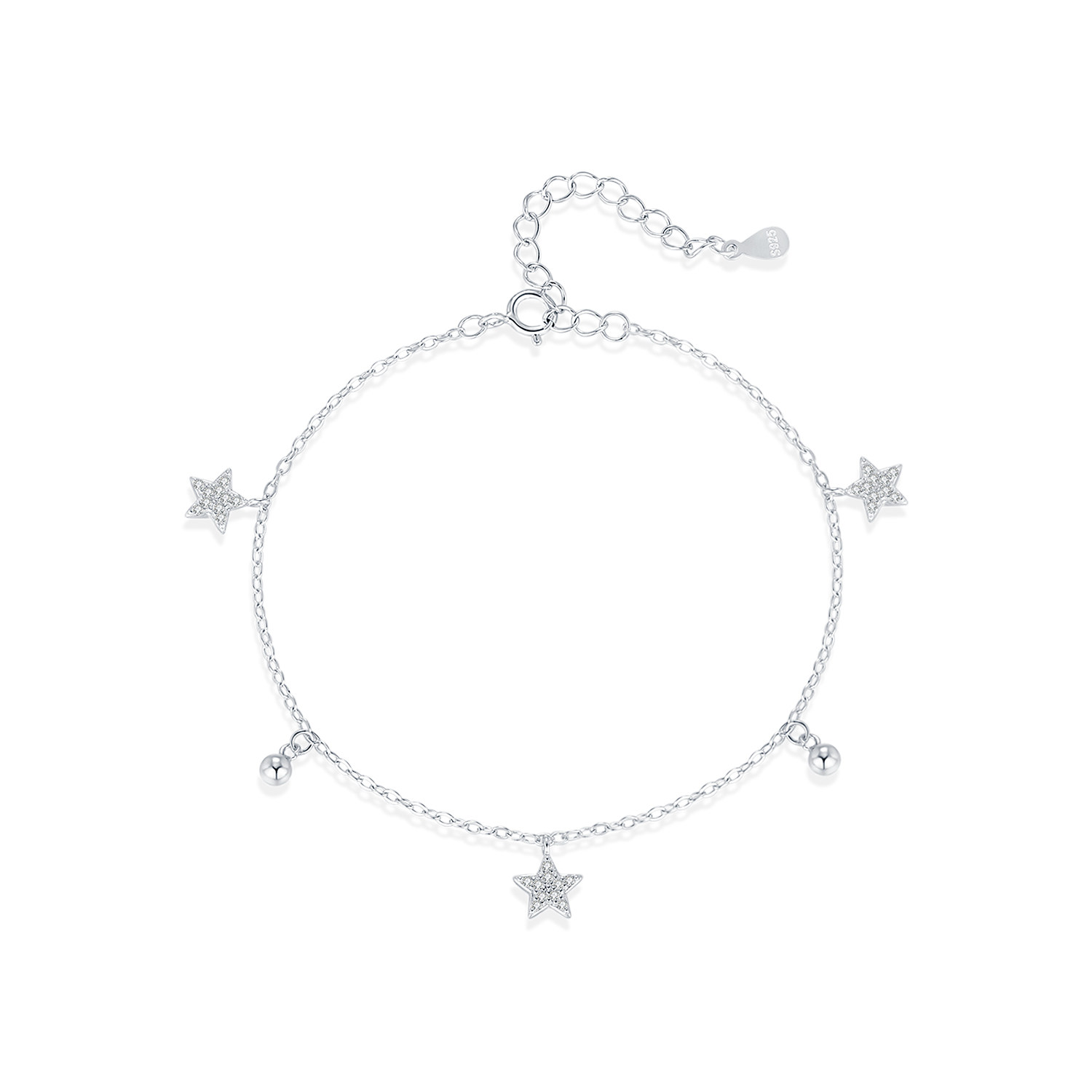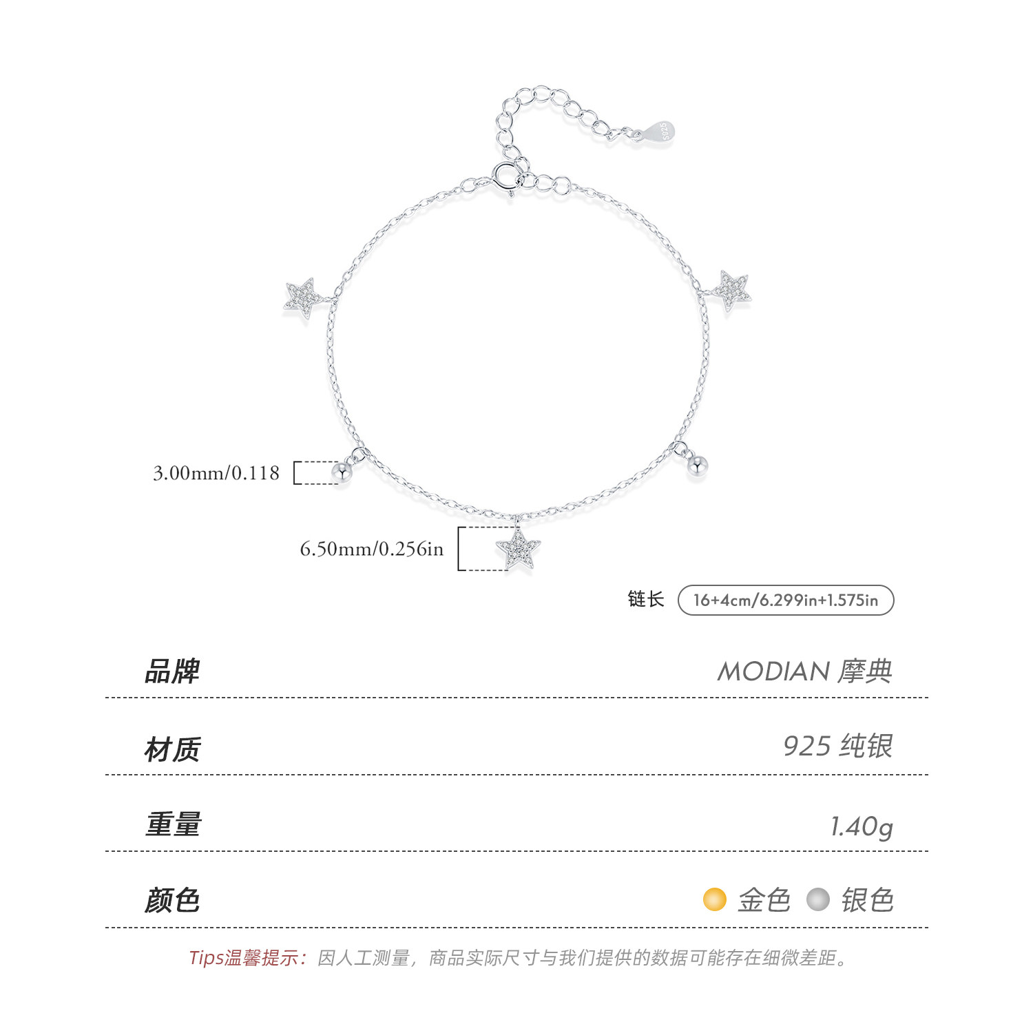 MODIAN摩典S925纯银镶钻星星手链女简约小圆珠个性设计百搭手饰