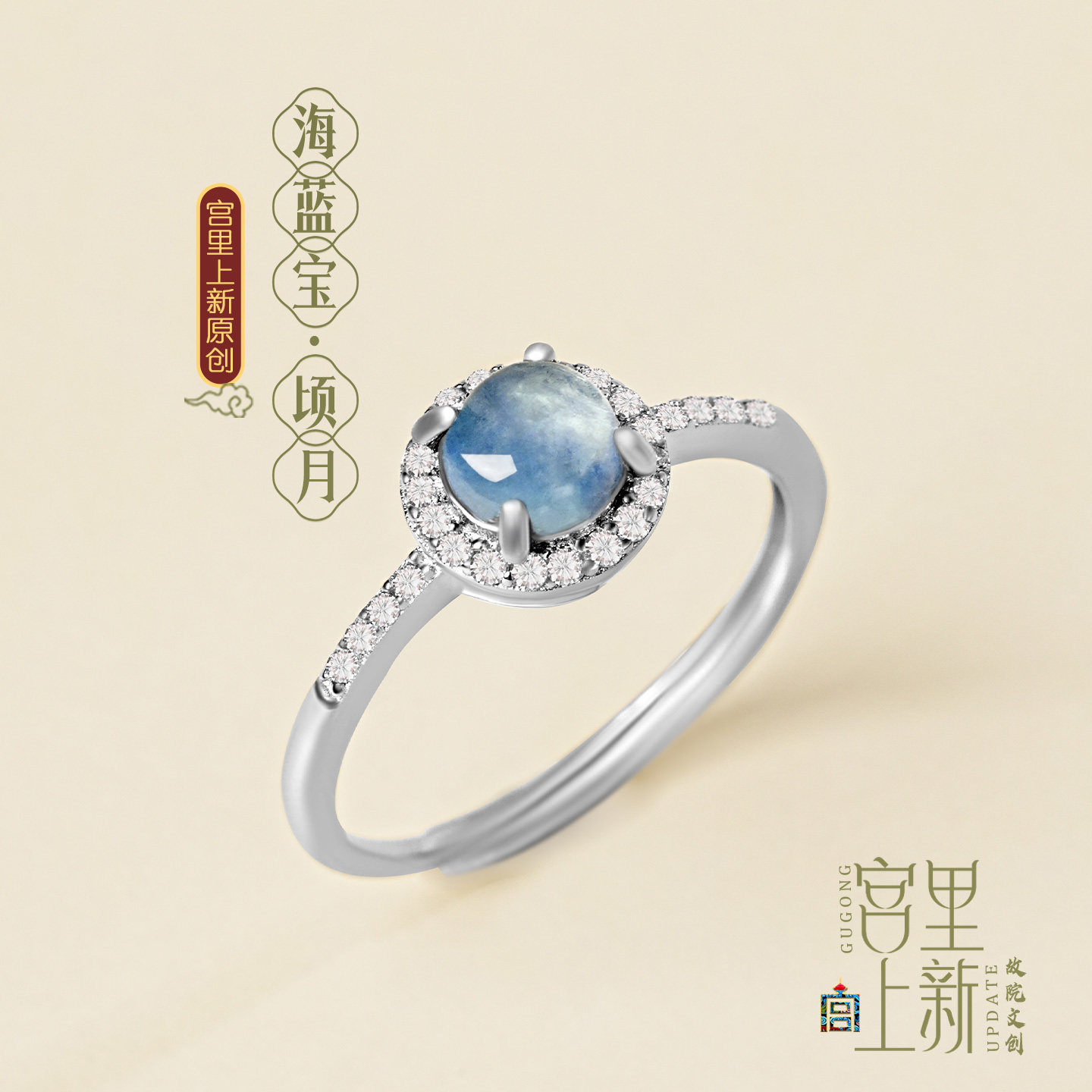 宫里上新蓝色戒指女纯银海蓝宝指环天然水晶小众设计生日礼物女生