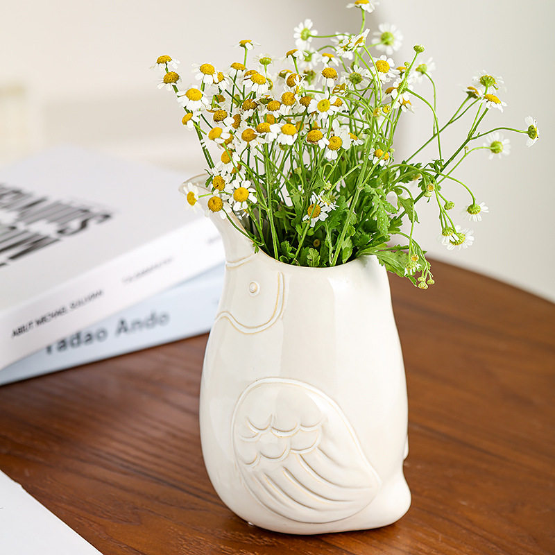 白色简约复古美式田园风小鸟陶瓷鲜花瓶客厅卧室家居装饰摆件