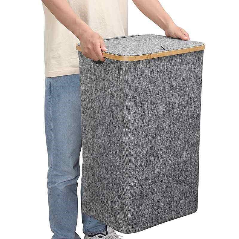 AT69 -Clothes Hamper with Lid,Bamboo Dirty Laundry Baskets w