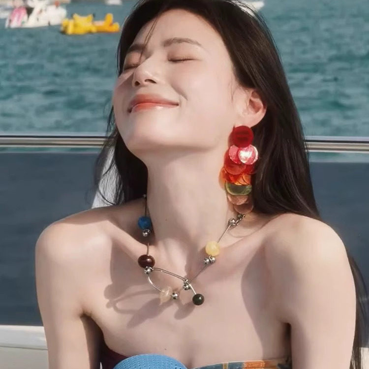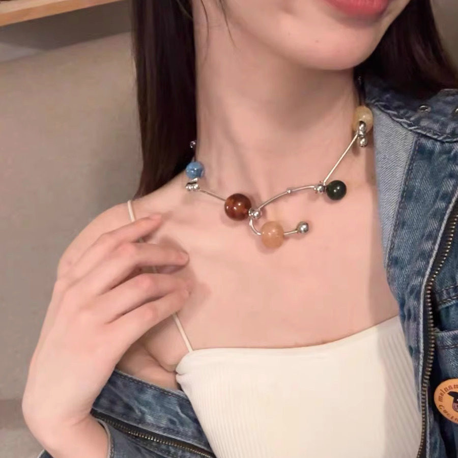 多巴胺彩色交响乐串珠项链女个性大圆珠锁骨链颈链夸张撞色锁骨链