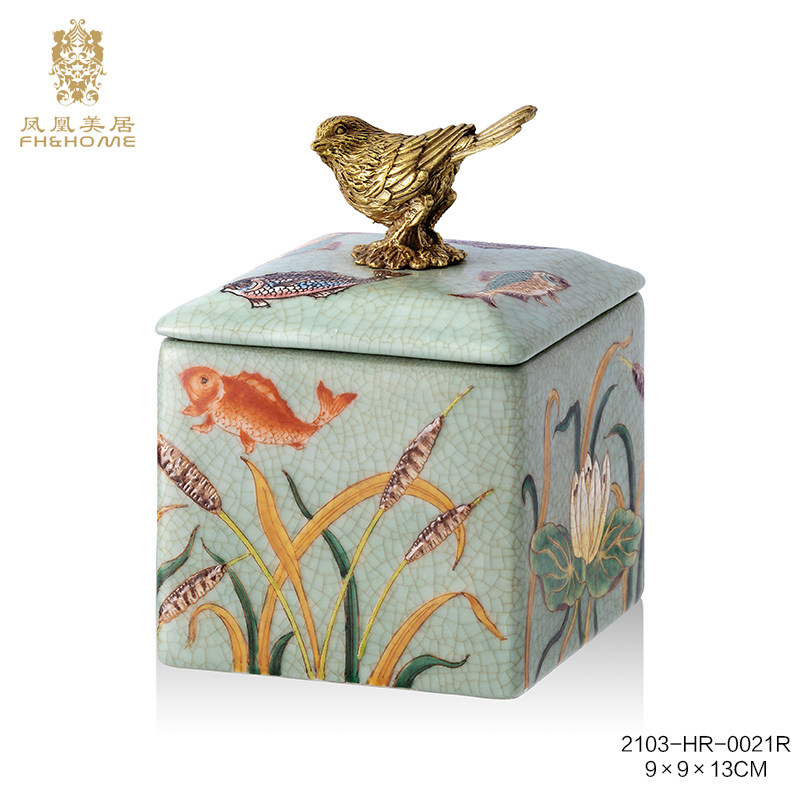 茱莉安法式复古陶瓷配铜金色绿色盖盒带盖装饰盒桌面饰品小摆件