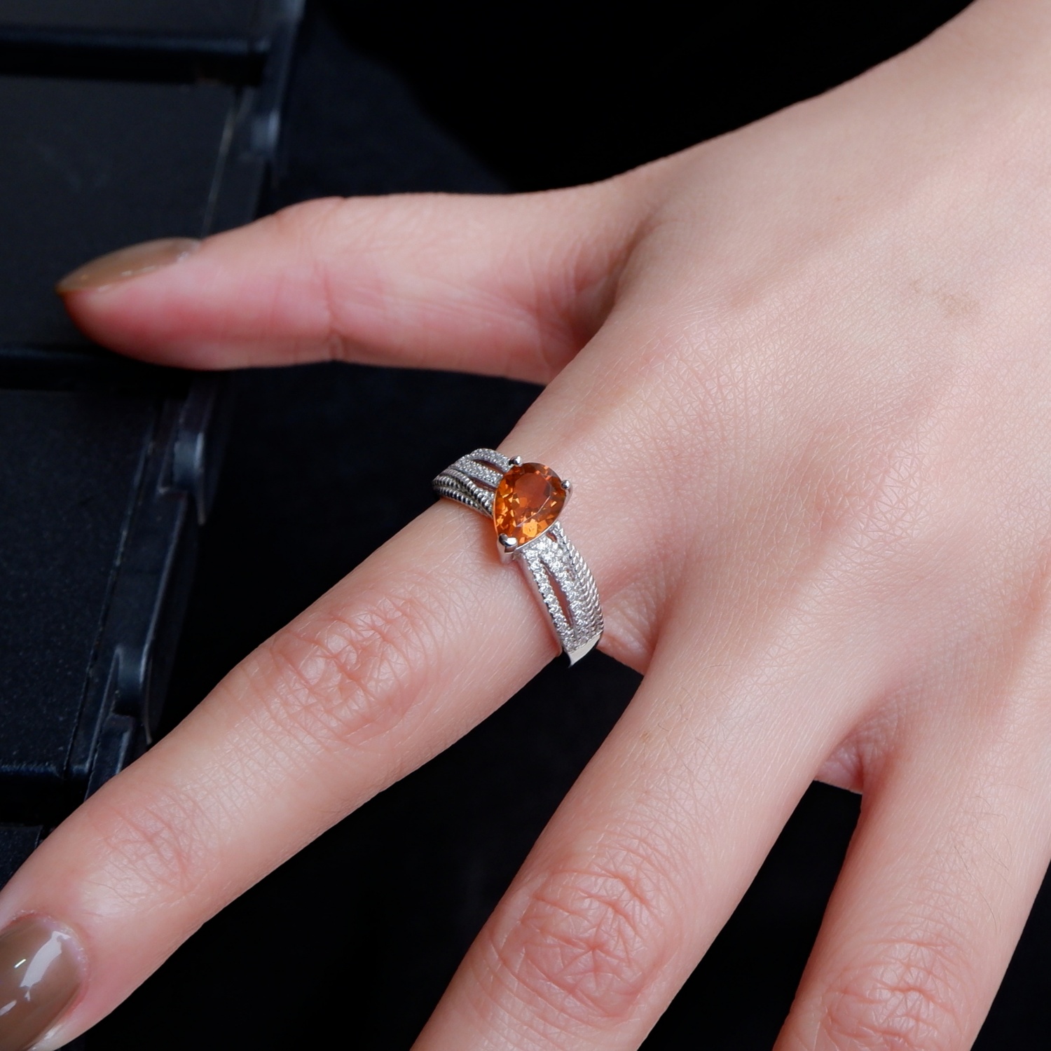 轻奢高级感原创设计天然黄水晶戒指女招财转运纯晶体s925银食指戒