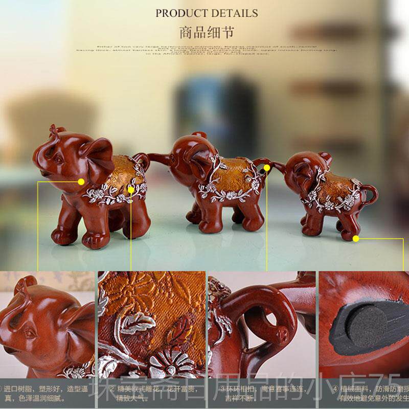 高档欧美式只小工象摆设三大象摆件三连象创意艺品客厅酒品柜装饰