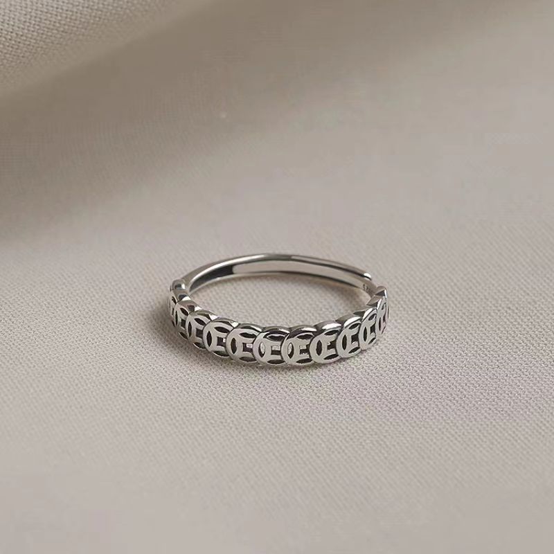 银色新款复古戒指女招财聚财钱币个性设计简约小众开口转运指环潮