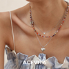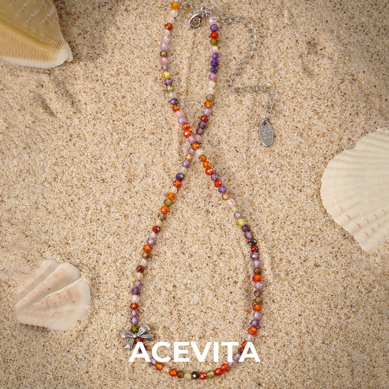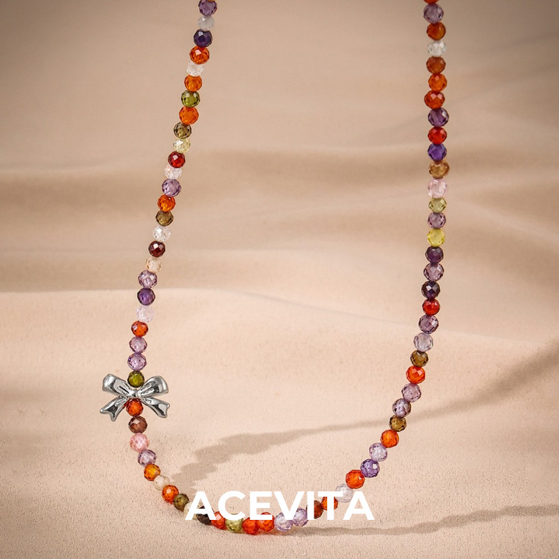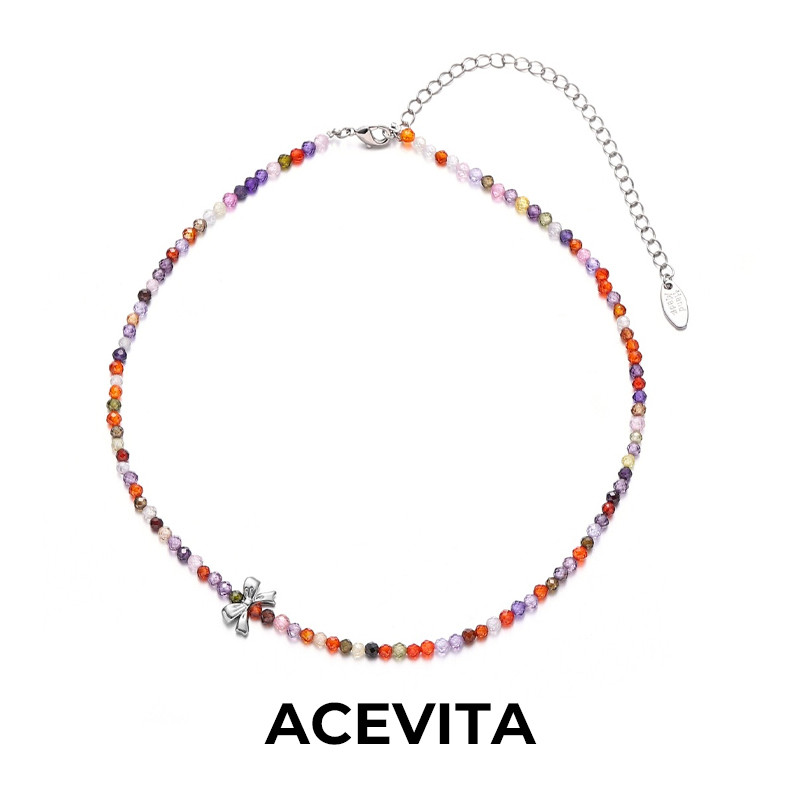 ACEVITA | 时尚新中式时尚项饰优雅黄铜镀白金蝴蝶结彩锆串珠项链